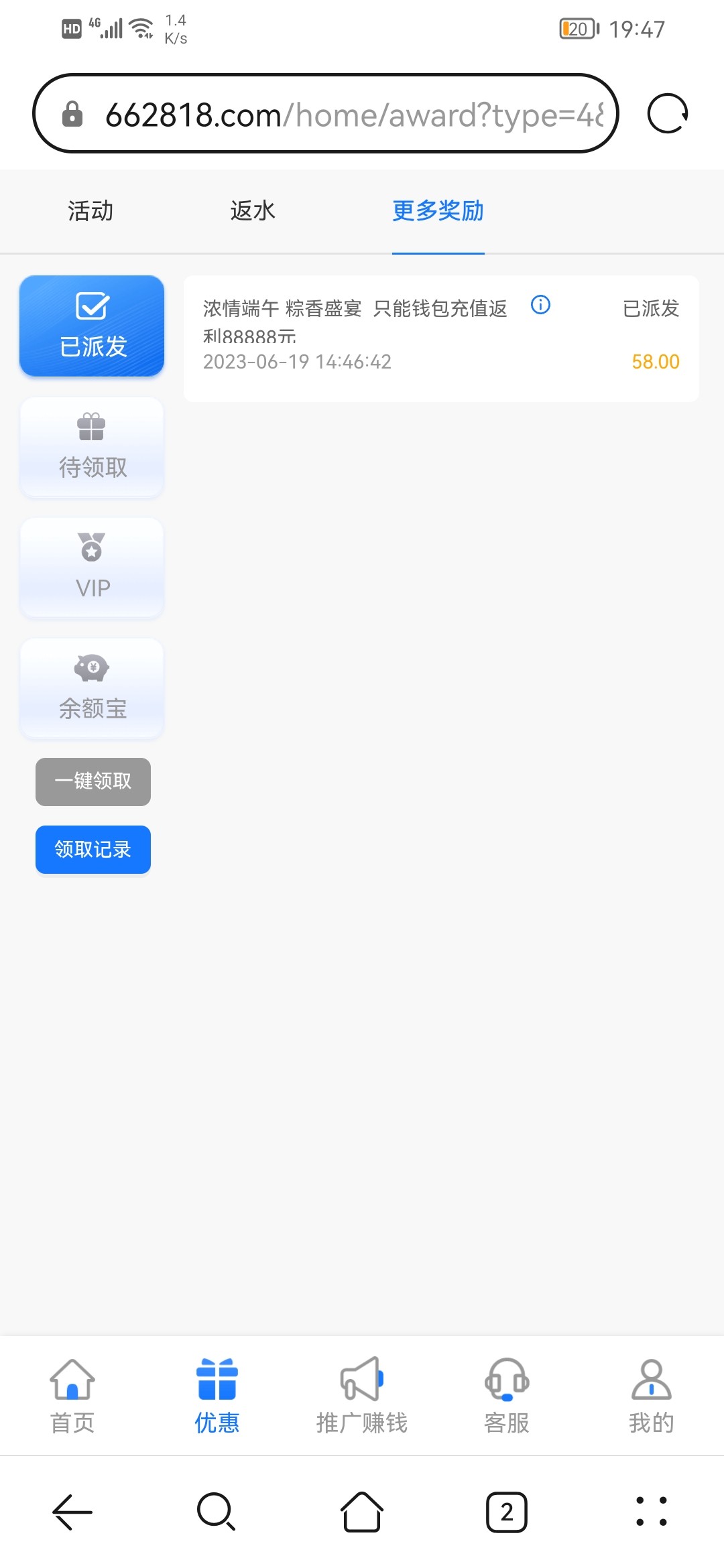 我只充了一次200也有58