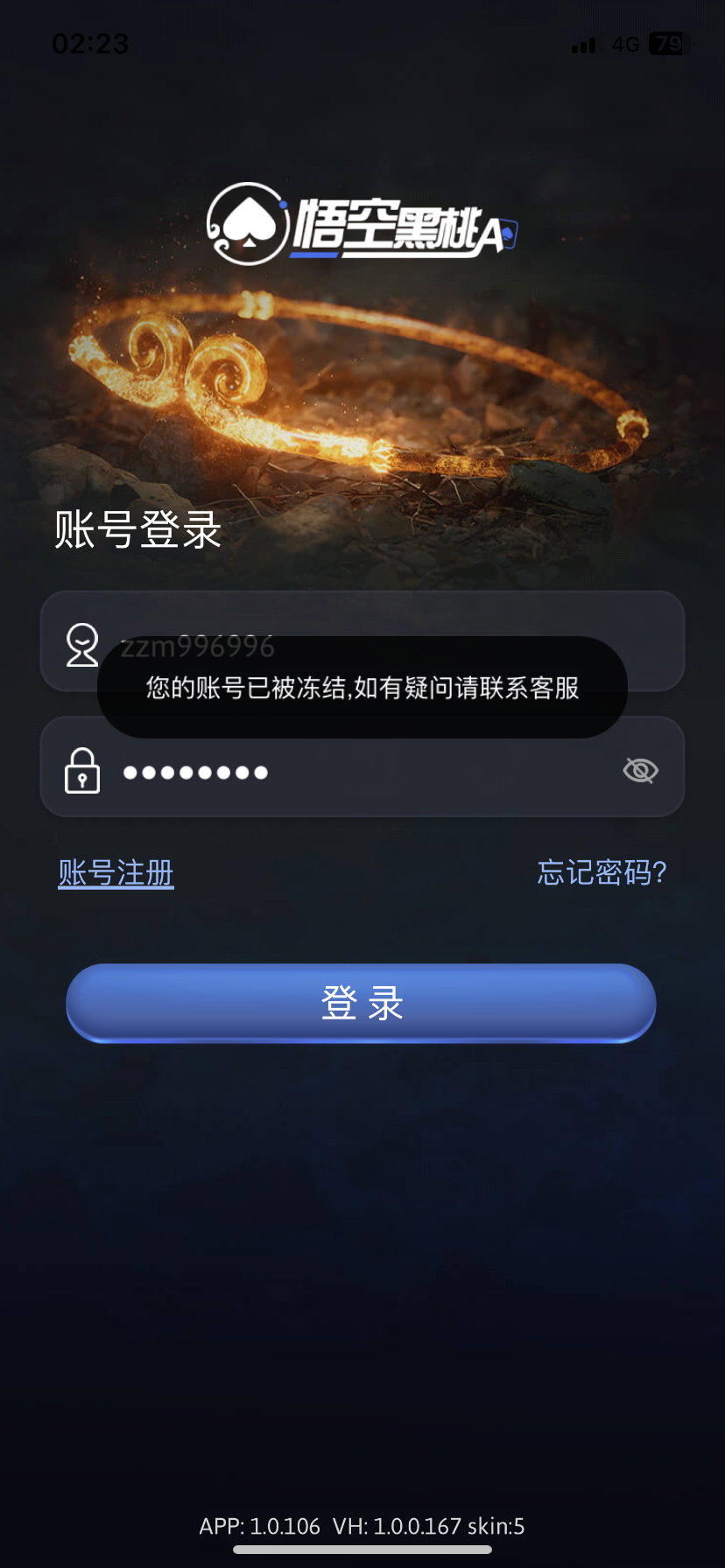 下分直接冻结账号了