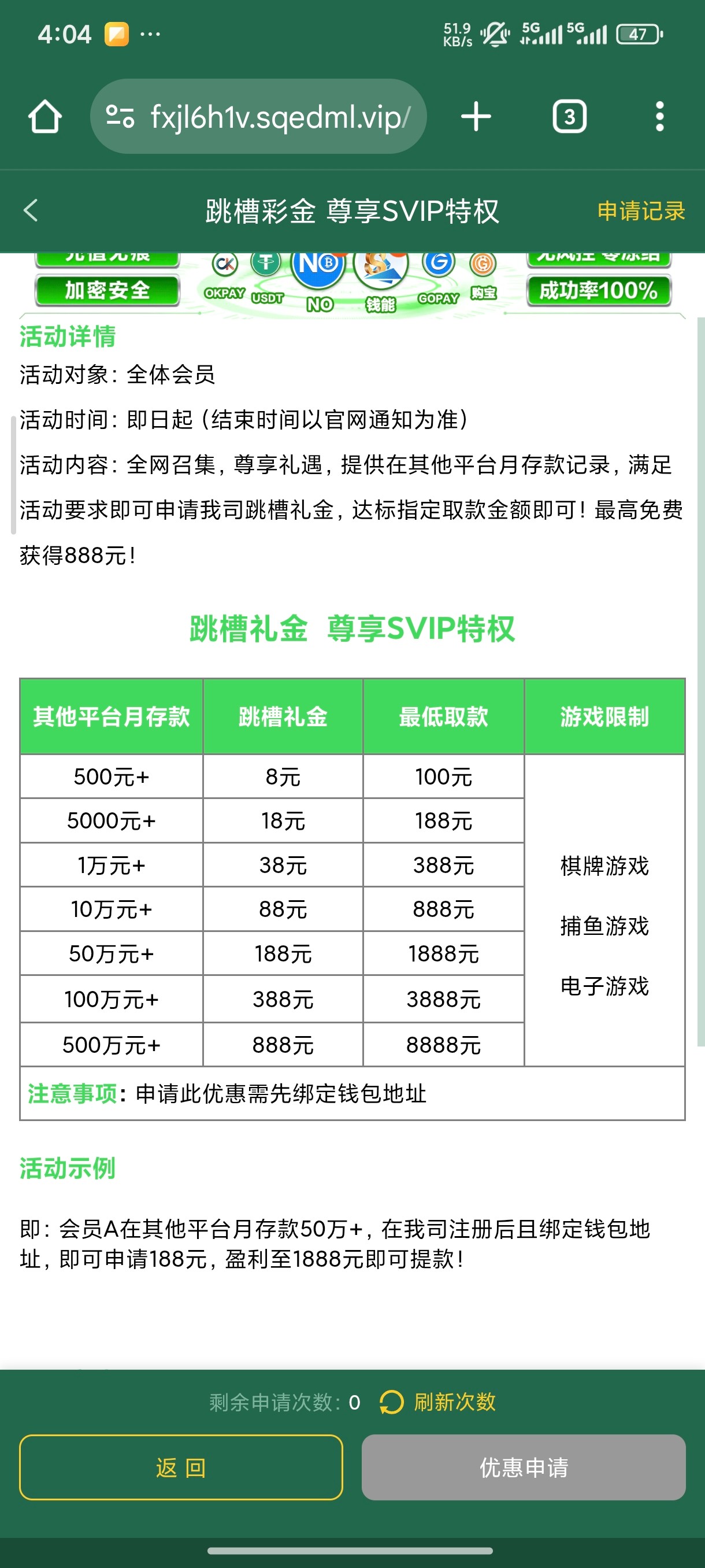 登录申请10U跳槽彩