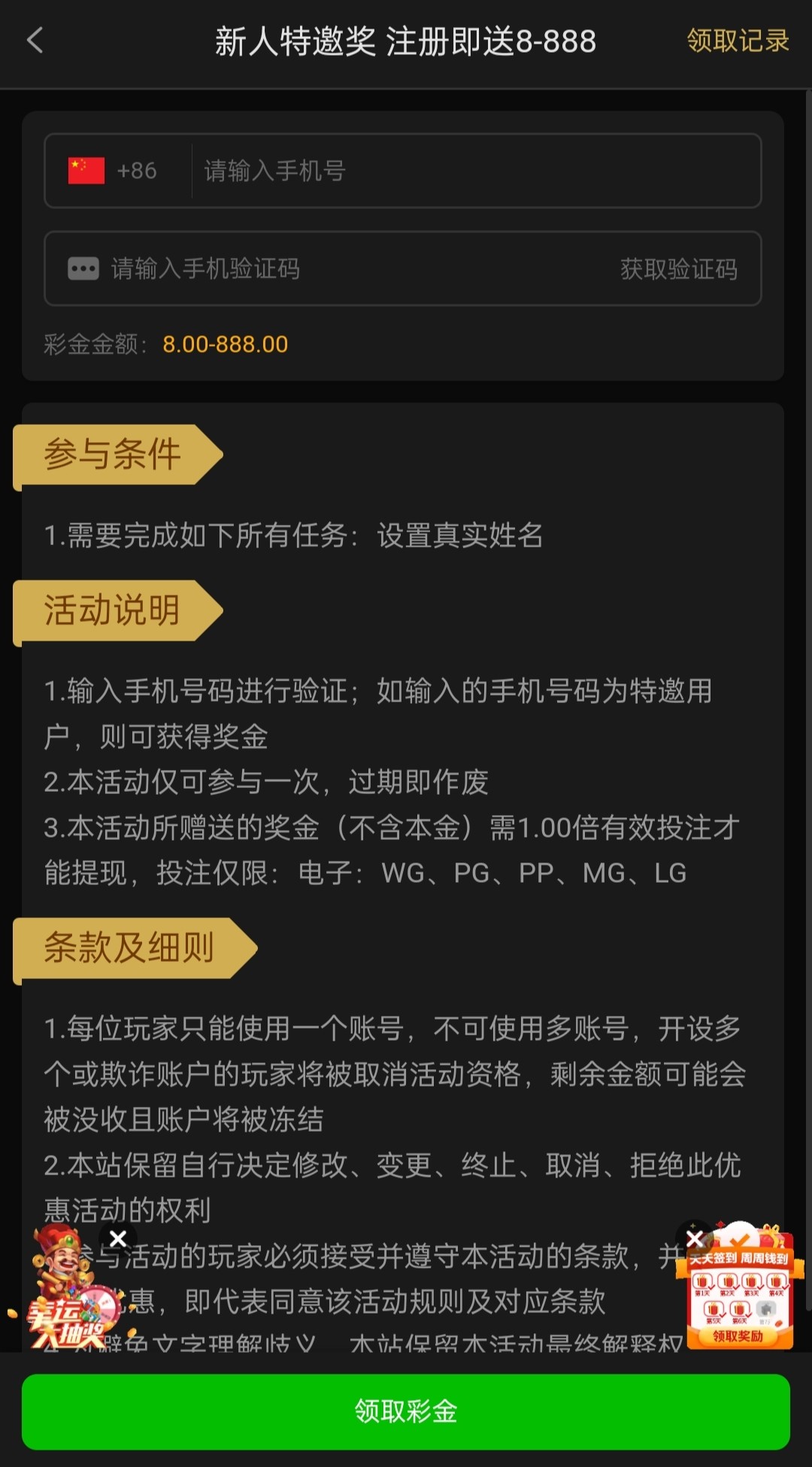 特邀自助领取彩金吧