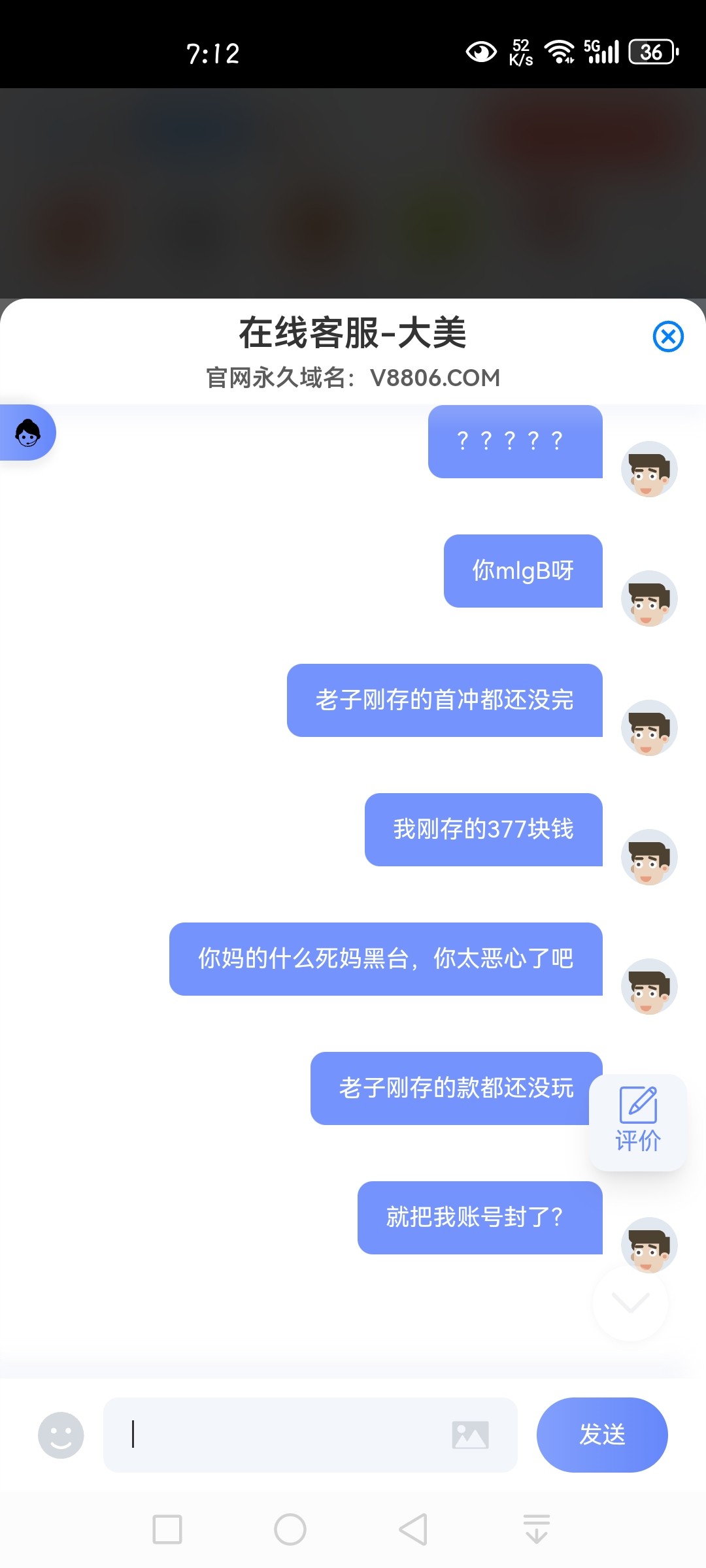 我他妈第1次见到这么牛逼的黑台,充了377块钱申请这个50%的首充,都还没开始娱乐,就直接封号了 V88体育 真你妈牛逼,给大家看一眼,这个傻逼黑台 我真的服了