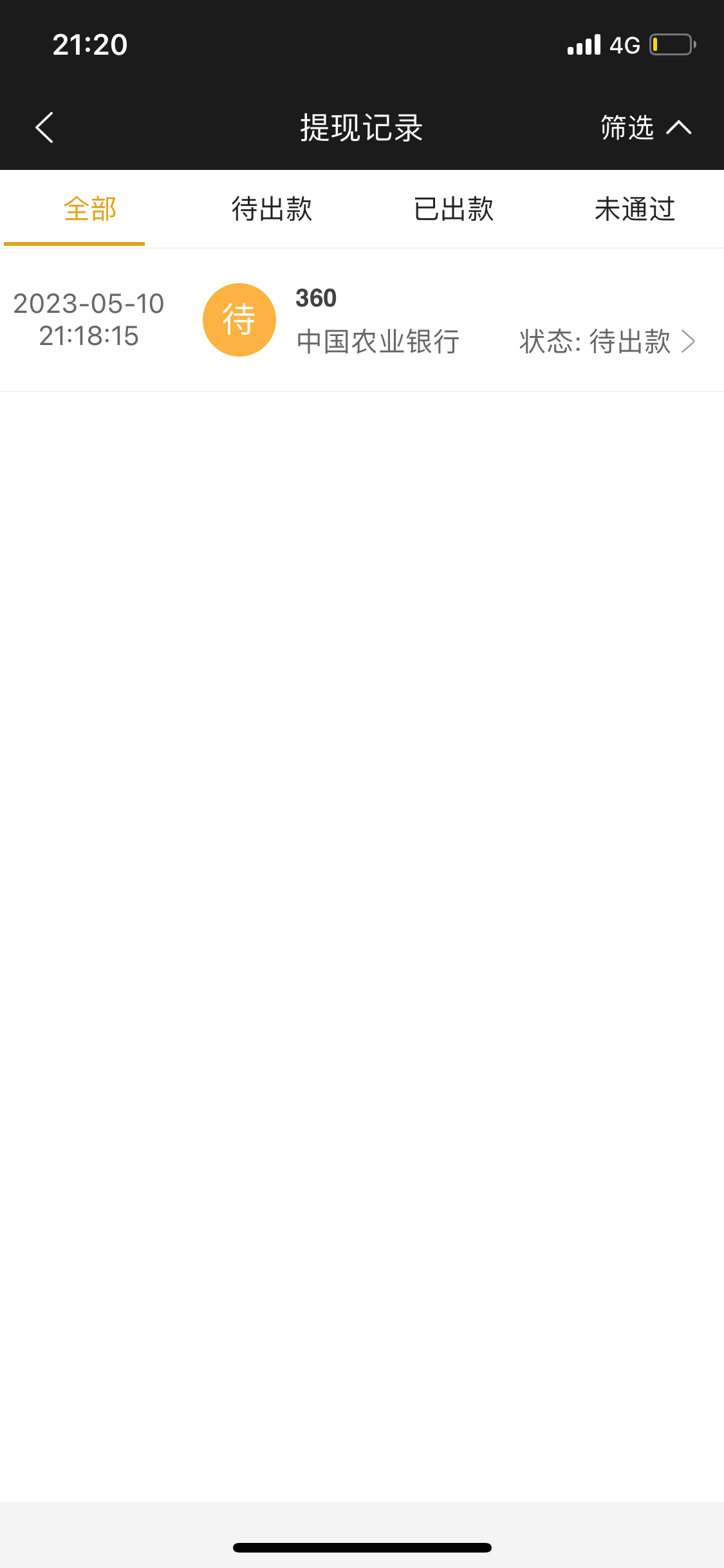 36块钱彩金打到指定提现额360,正在提款,期待到账