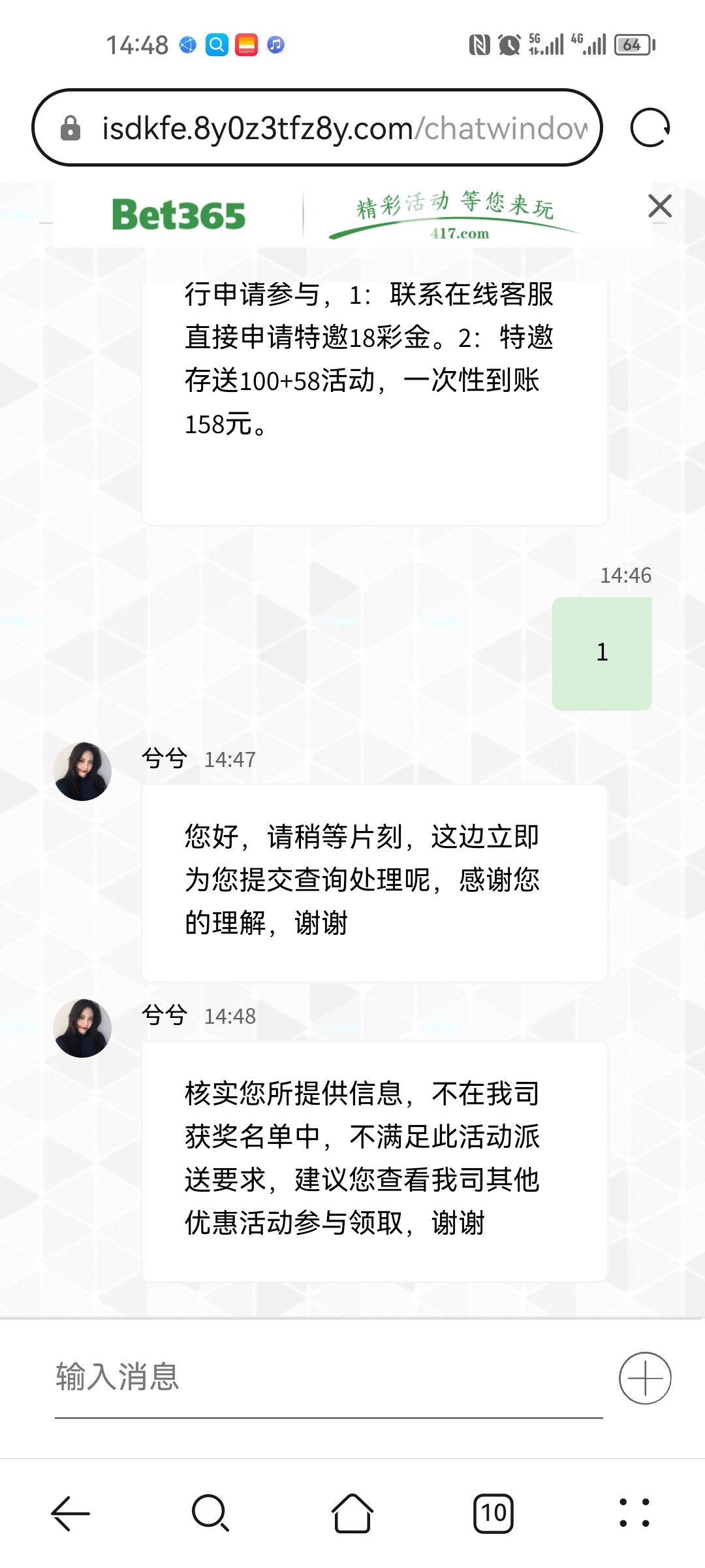 今天给我打了电话领了18 应该是老用户新用户都可以 大家可以去找客服碰瓷一下https://www.4175421.com/
