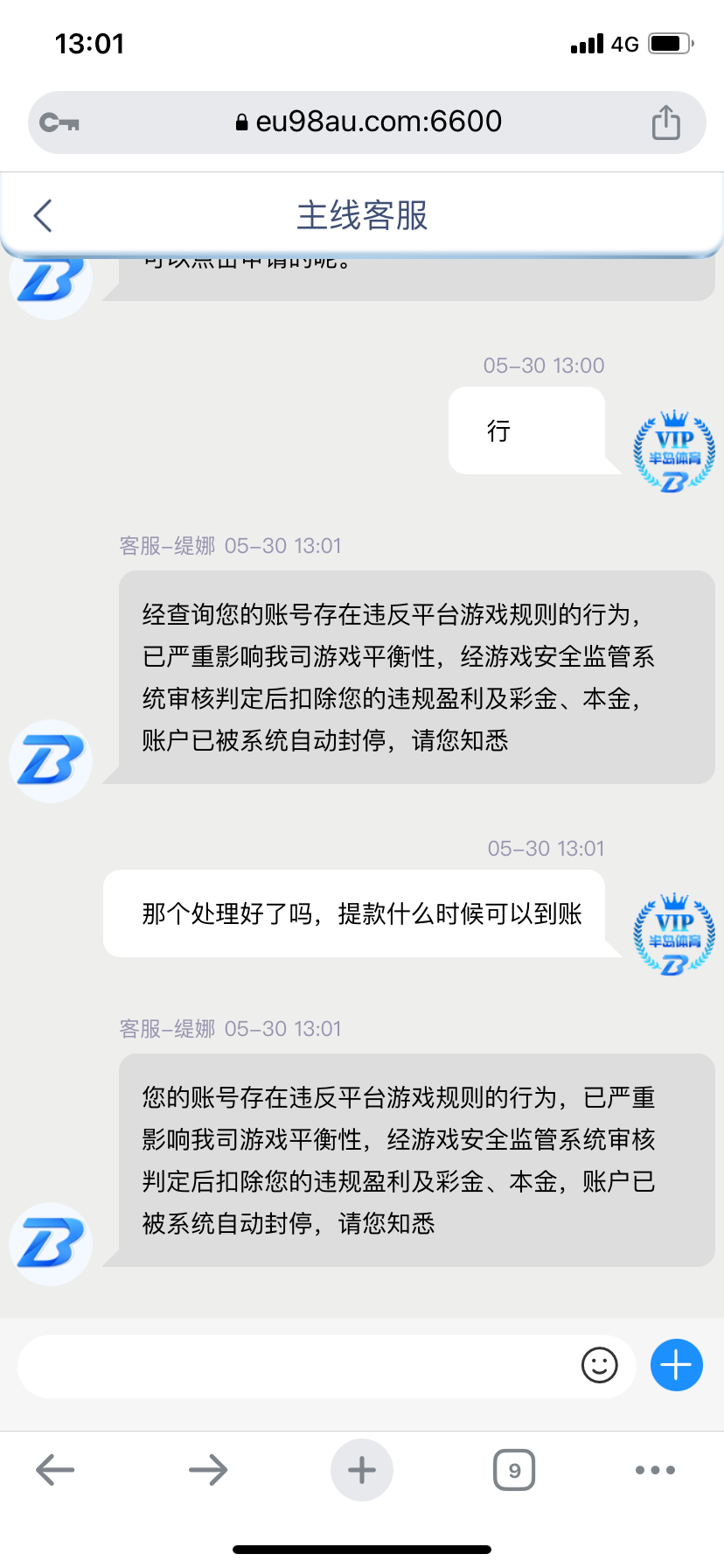 nuantian77 我拿1.88打到七千有错吗,还打了3.6w流水,赢这么点钱就把我封了还不给提