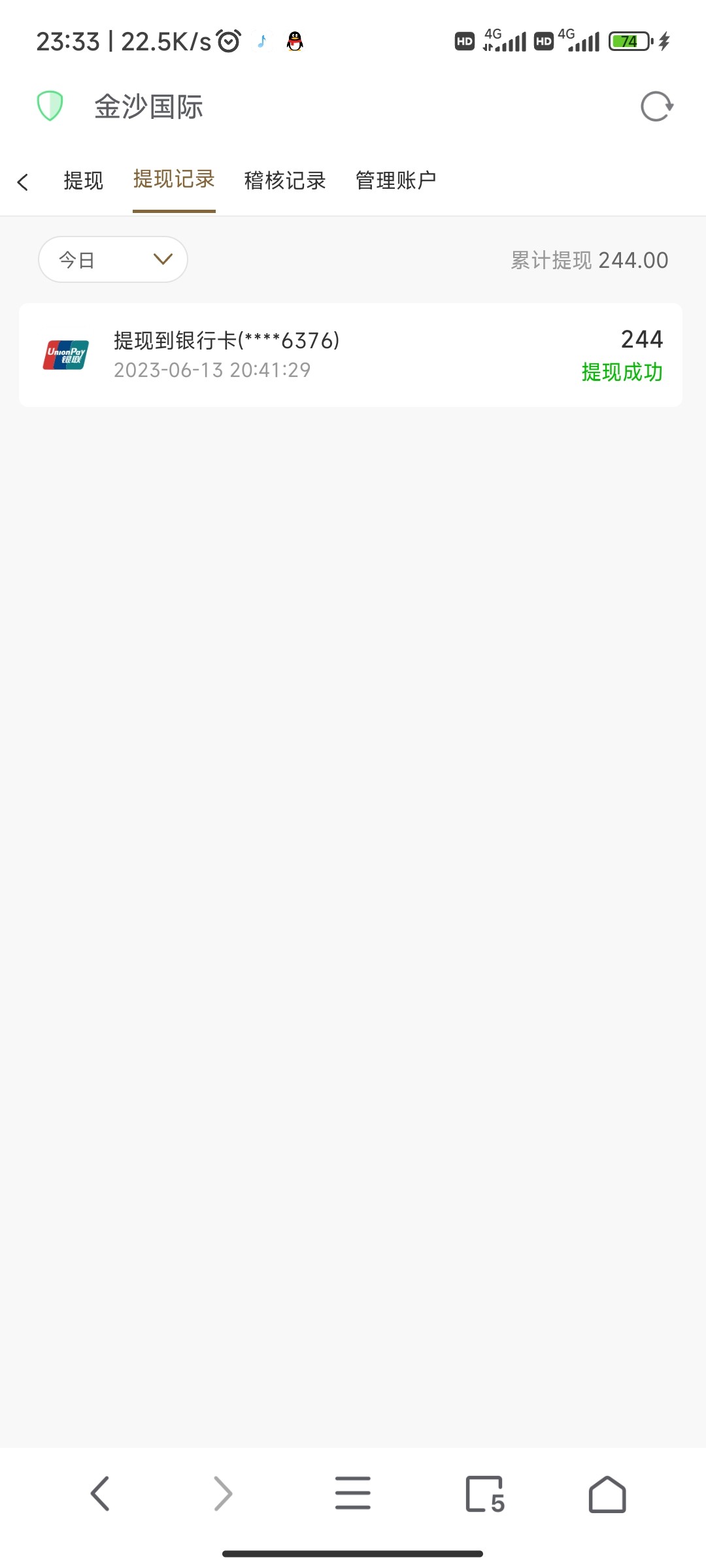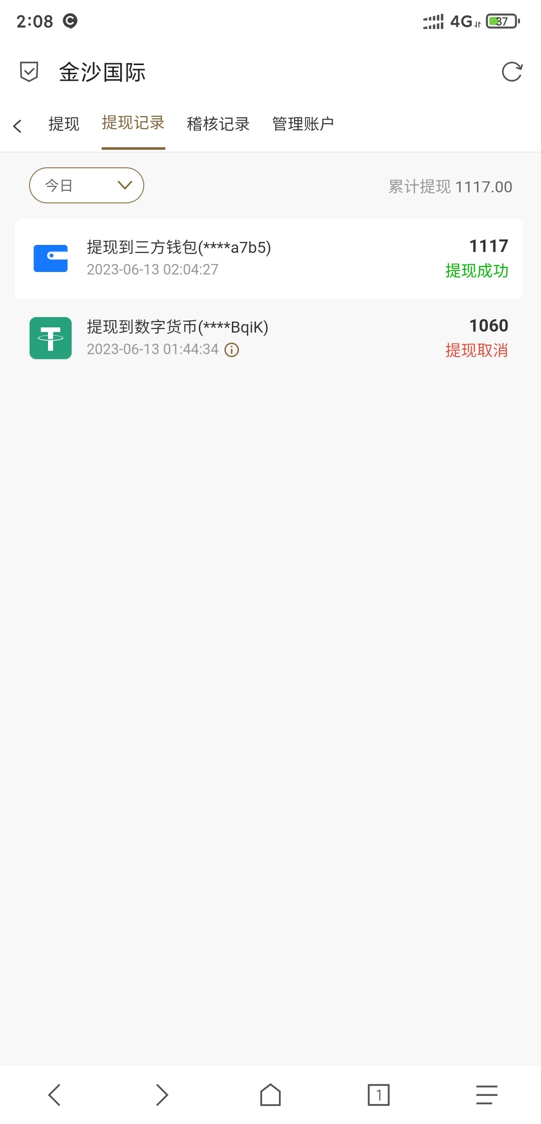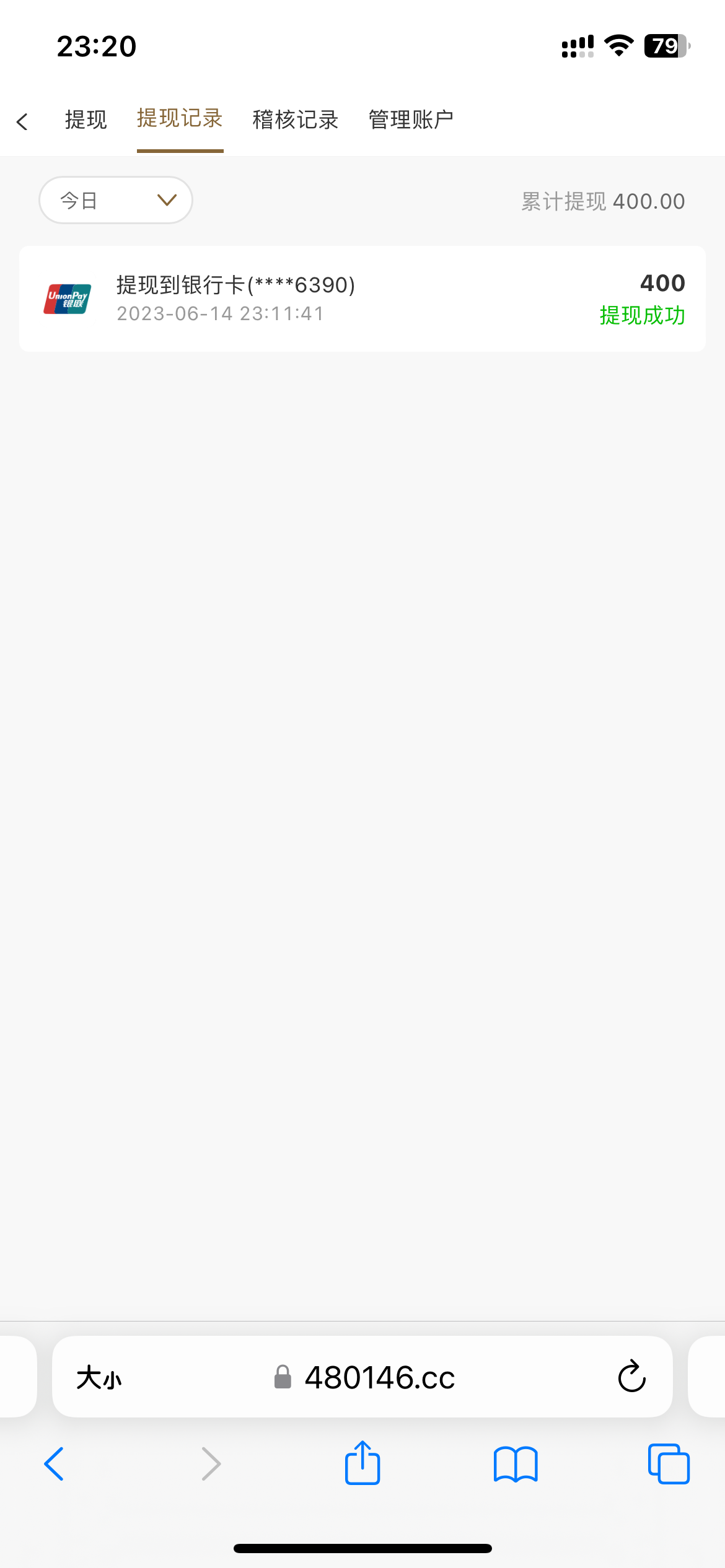 我的400到现在都没有到账、12号1点左右的时候提现的,差不多两天了