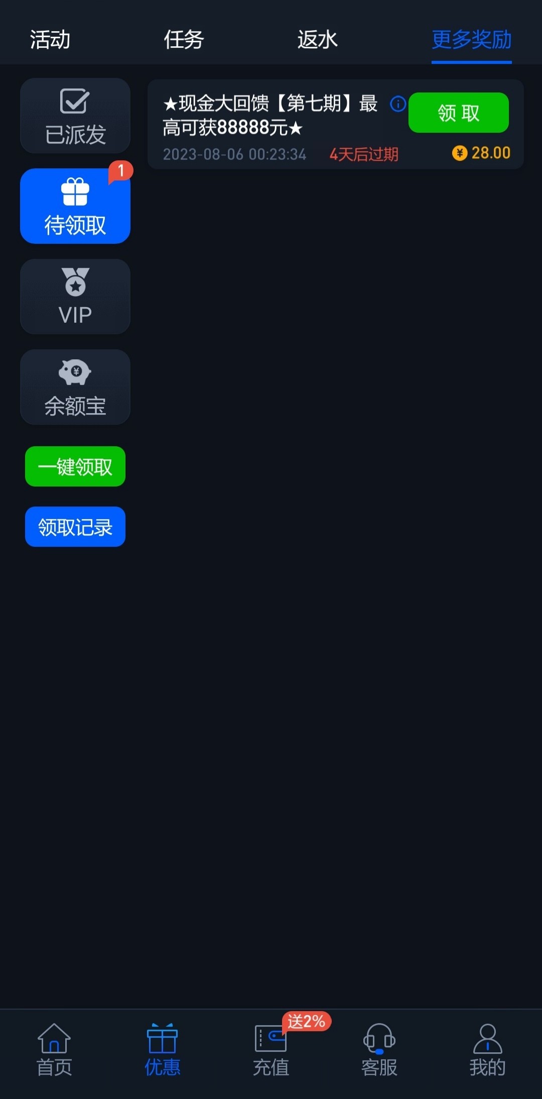 上个月发的白菜自己去看看有没有回馈彩金,还可以联系在线客服申请18电话彩金链接