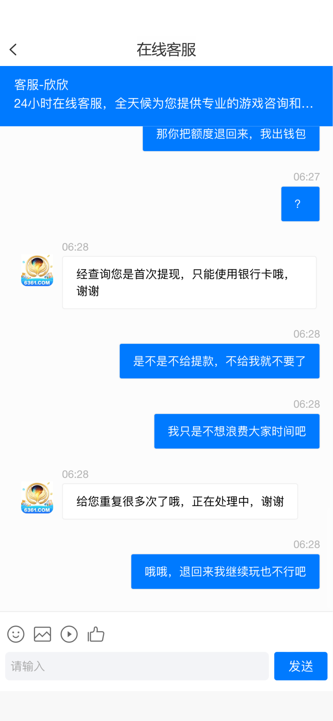 我就没看懂他在狗叫什么,都给你说了处理中,还她妈问是不是黑了,能不能给,智障吧,