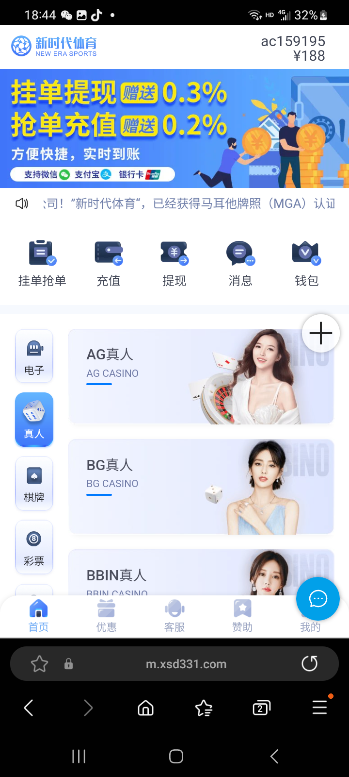 新特邀碰瓷送彩金188