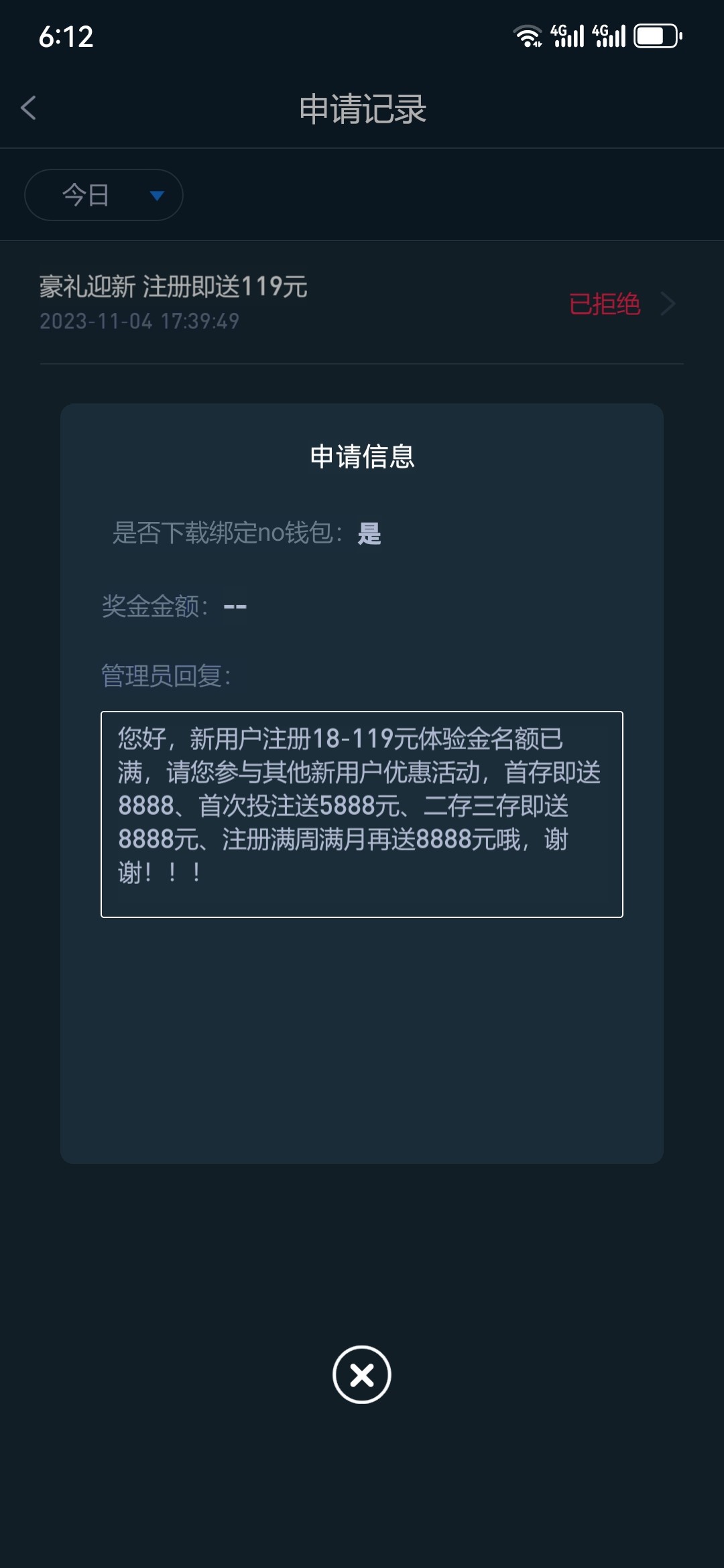 嗯 申请到了 最后0.4进洞了给了5倍 6倒我了