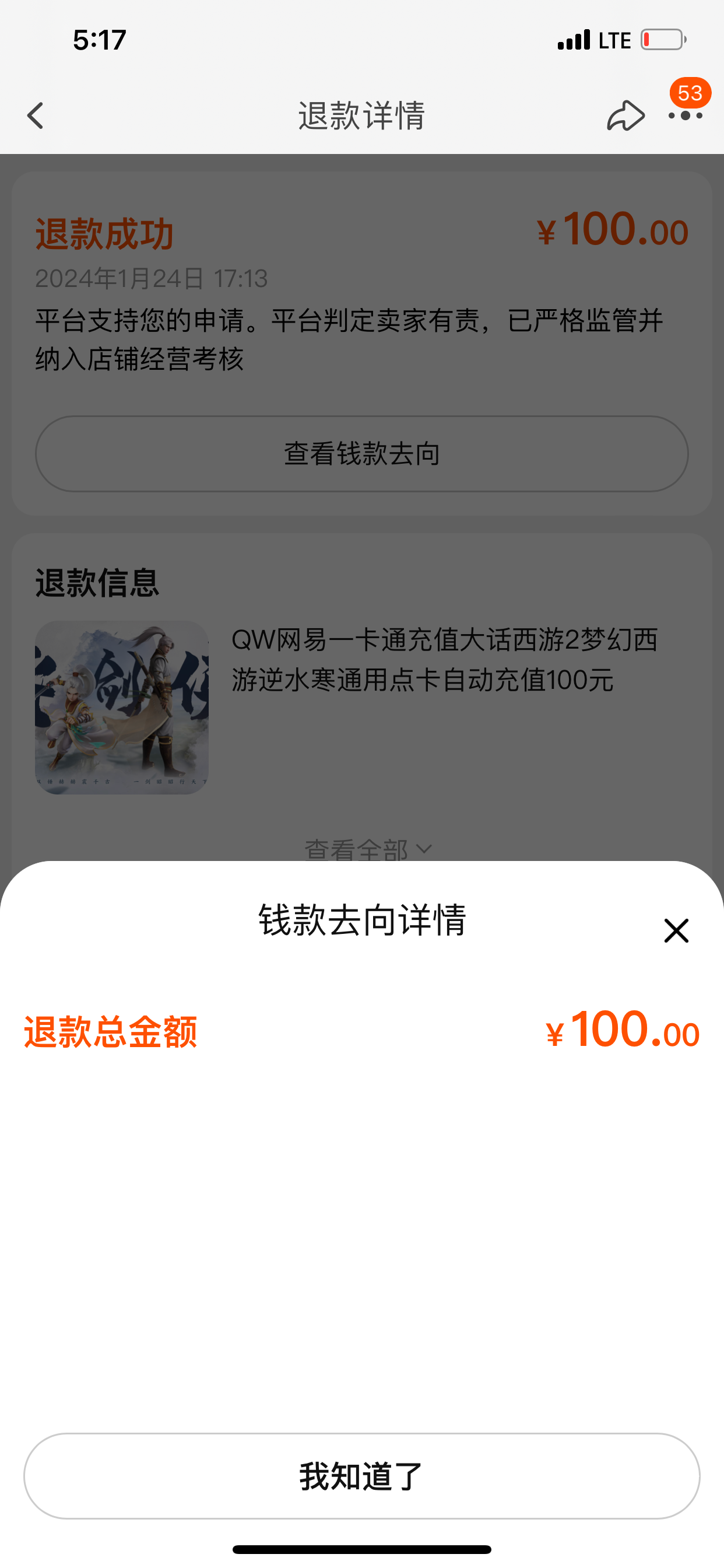 我退了100但是人家是TM真的黑商给我个使用过的卡密才退了的