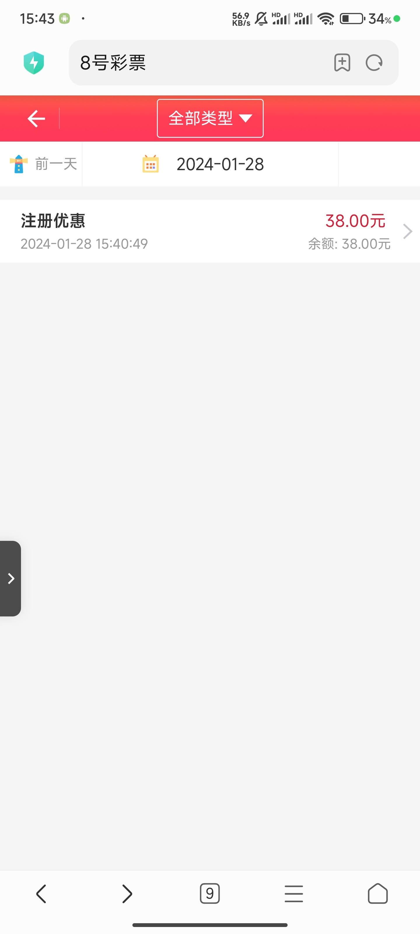 8号彩票送了38元彩金