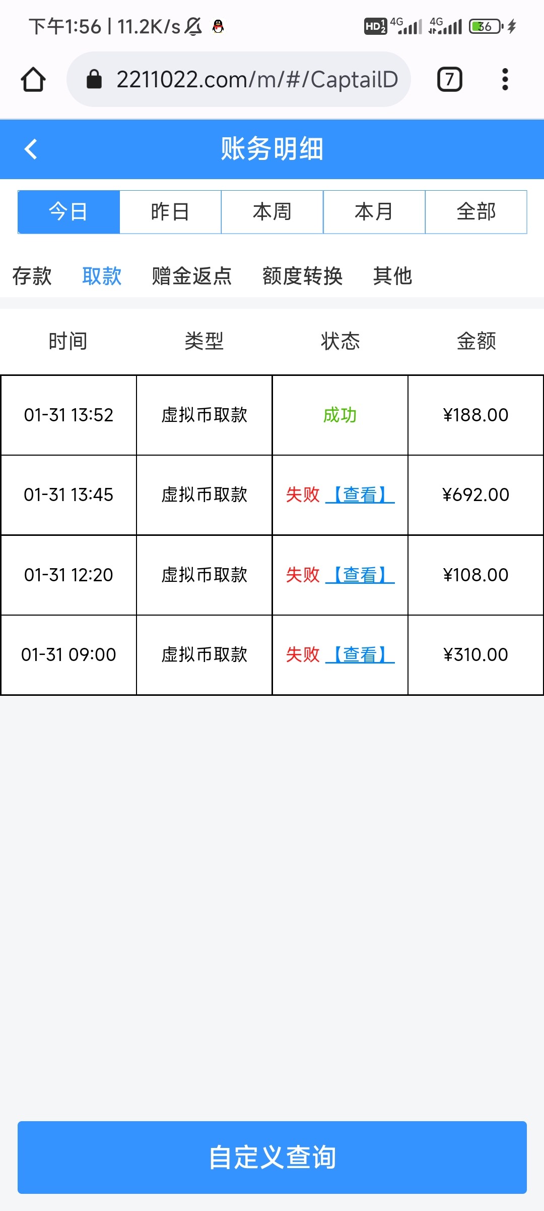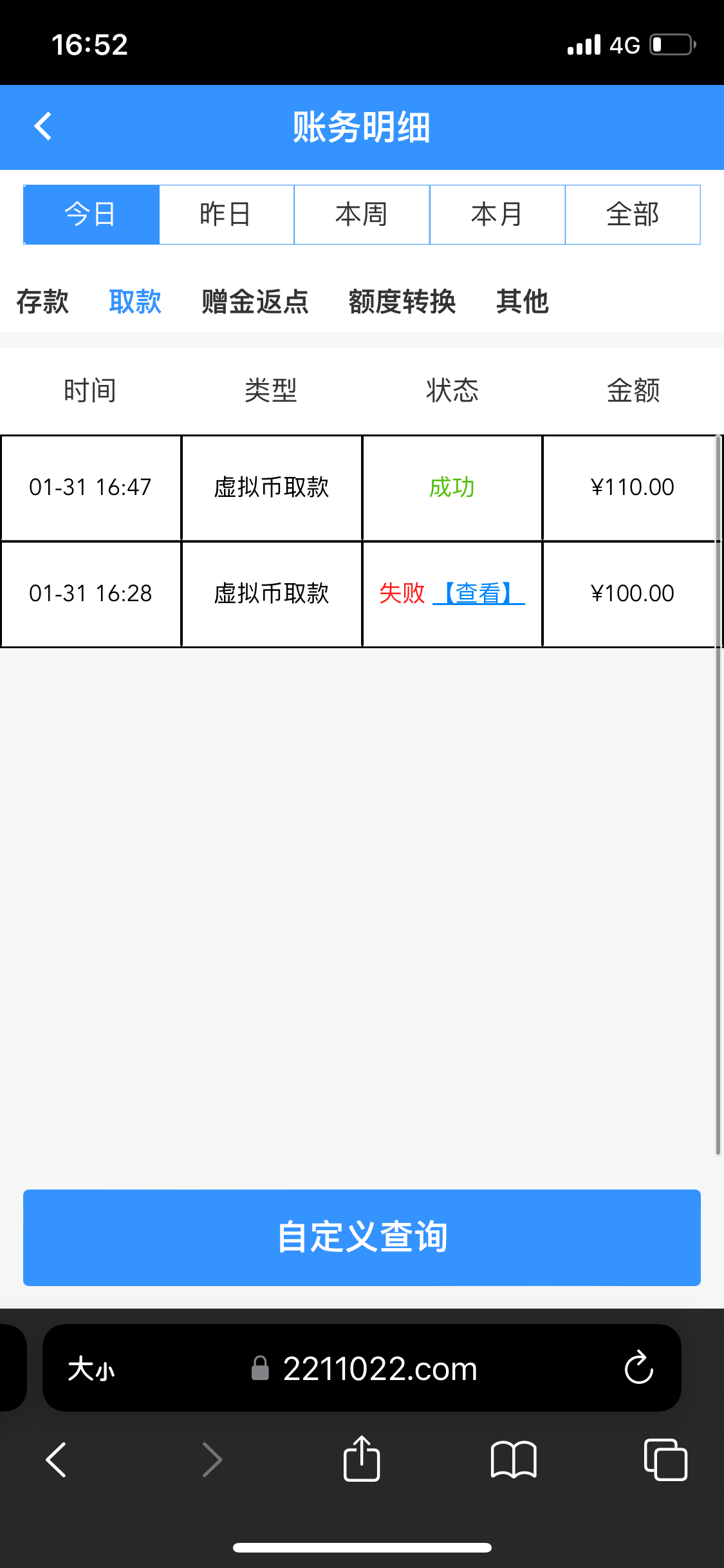 打了1.3k提100退回了,后面输到100提就到了