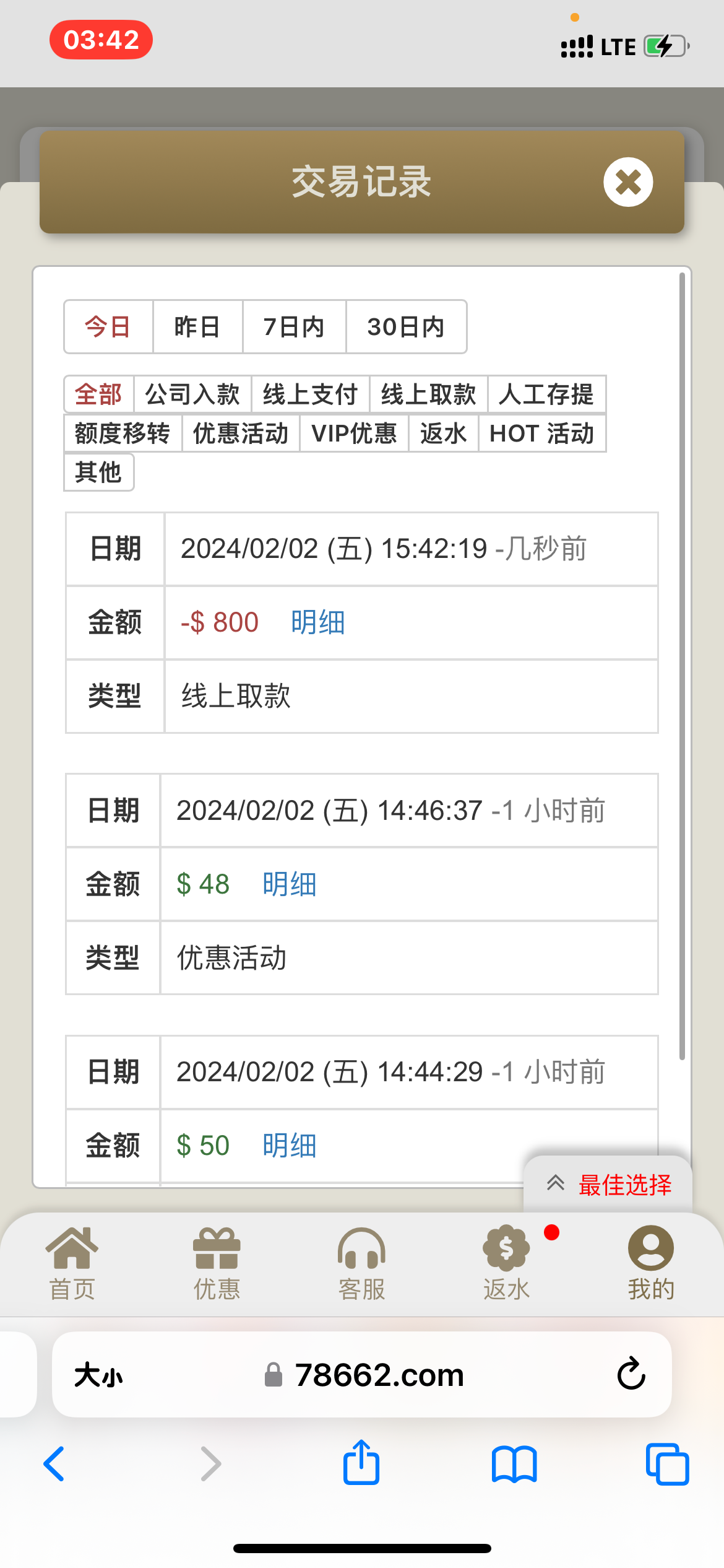 前一会1块反水上500,接着回充搞50+48又出咯