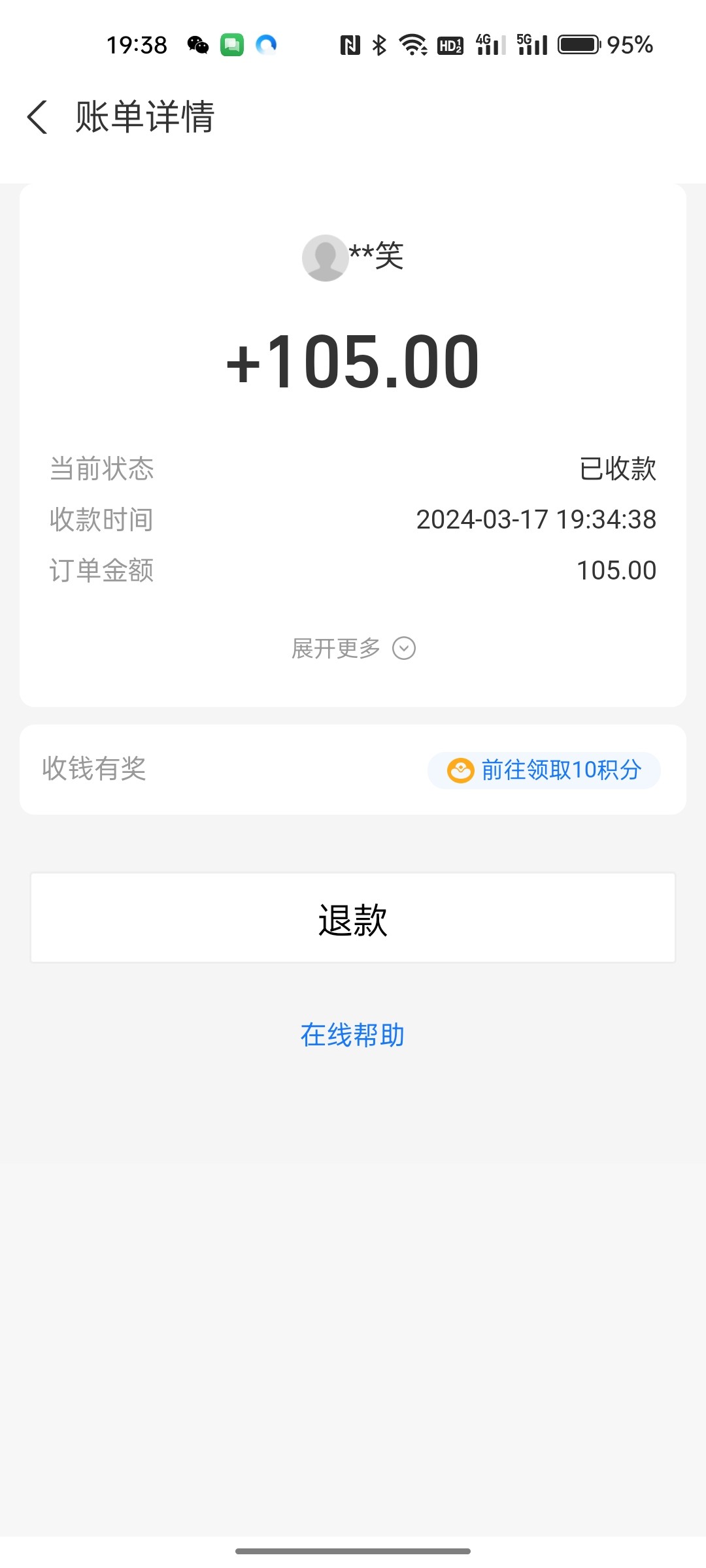牛逼 提了105 等到账