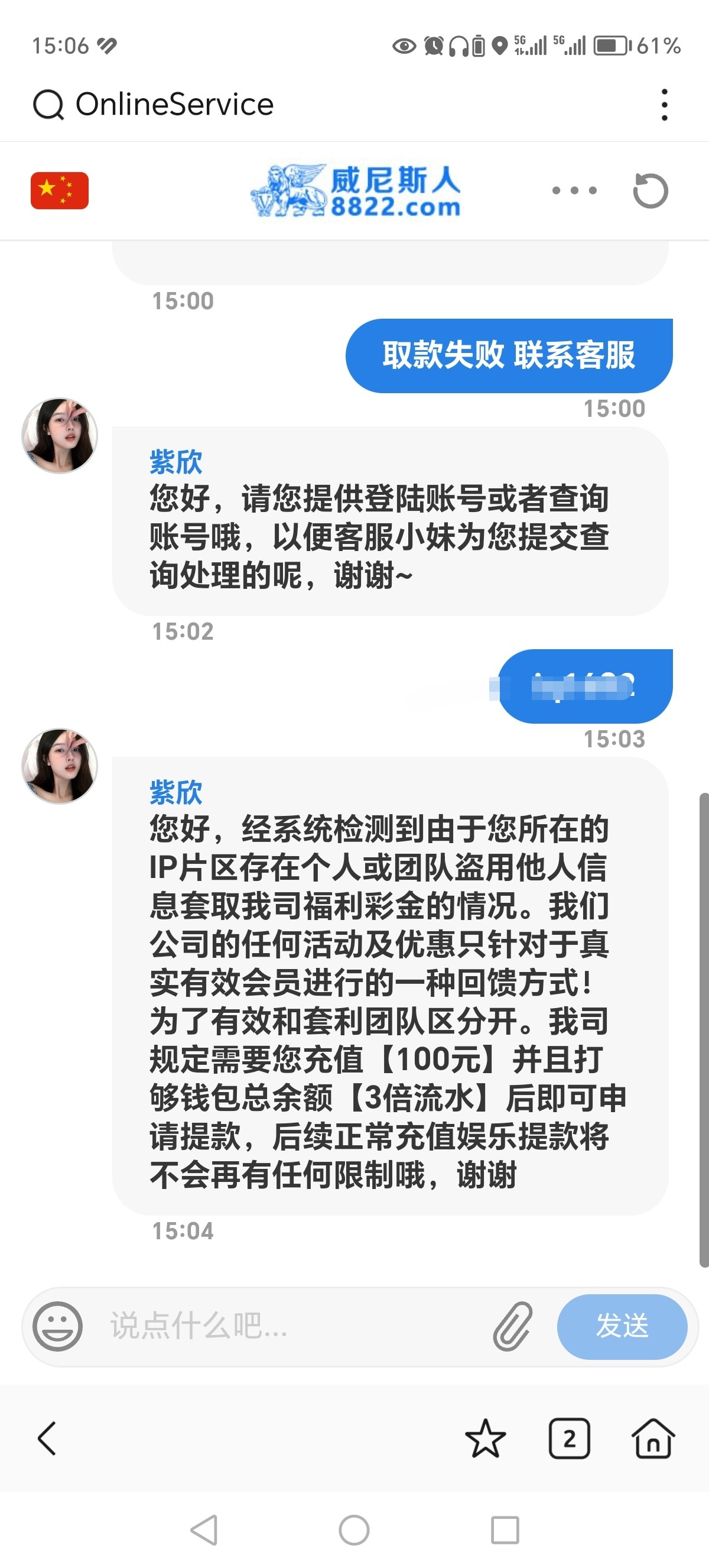 让我充值打三倍流水 去他妈的