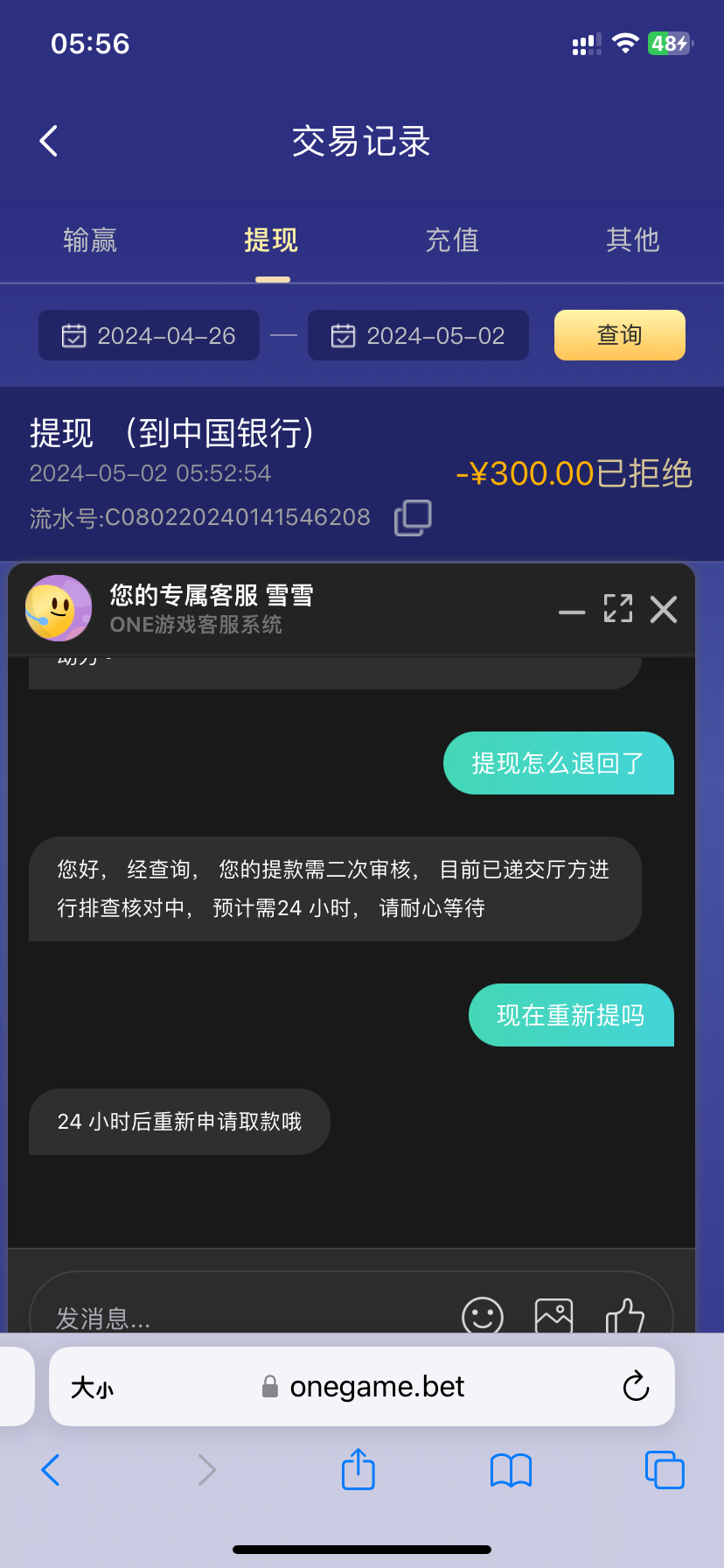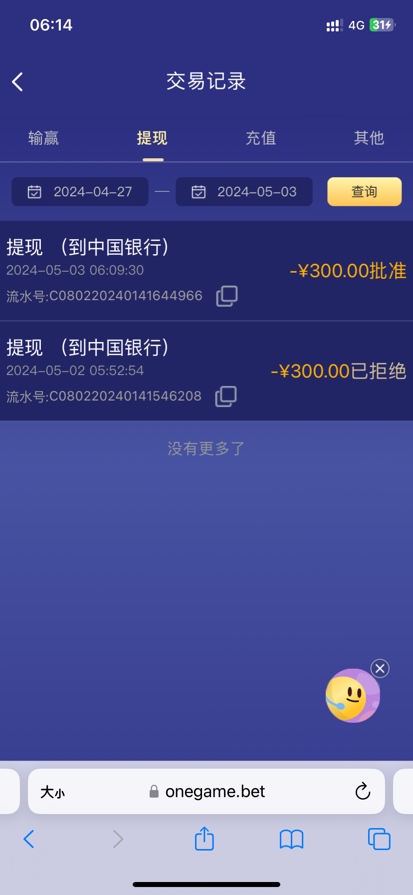 打到500、不够流水提了300,提款刚刚打电话来问资料等到账