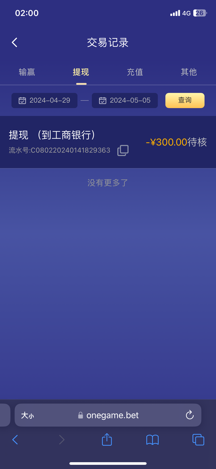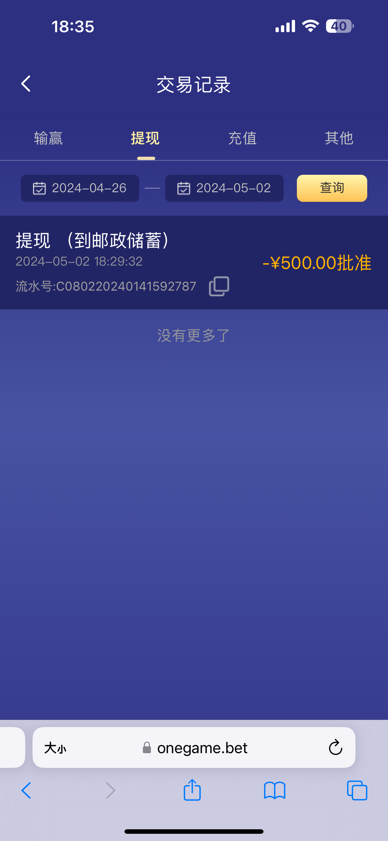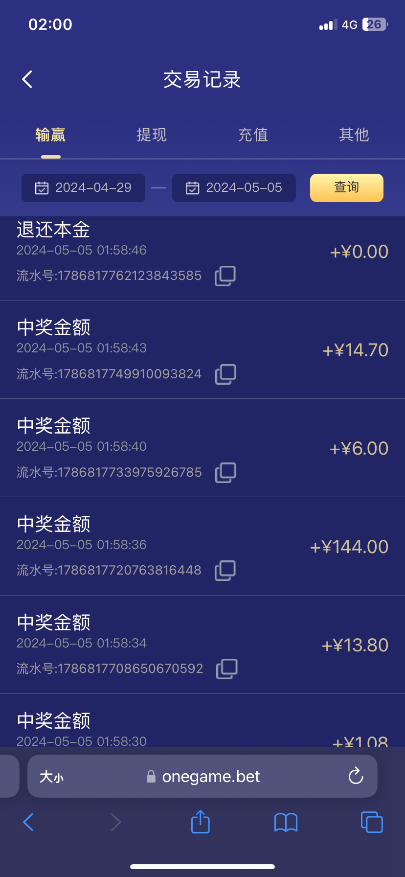 onegame.bet首存50+50,5水,亲测出款