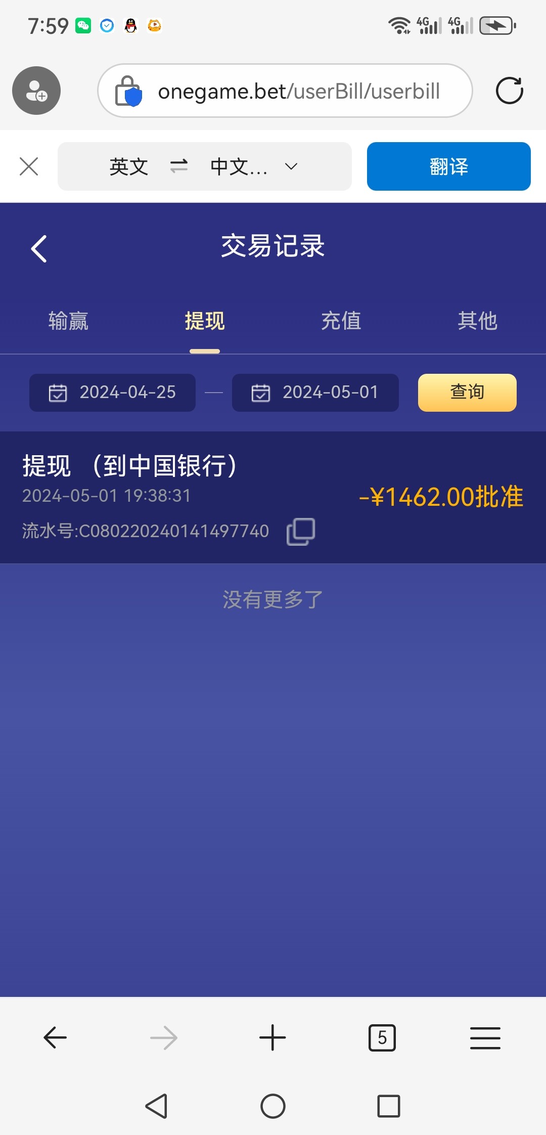 提600到账,感谢