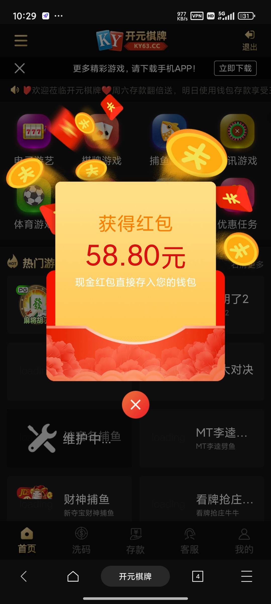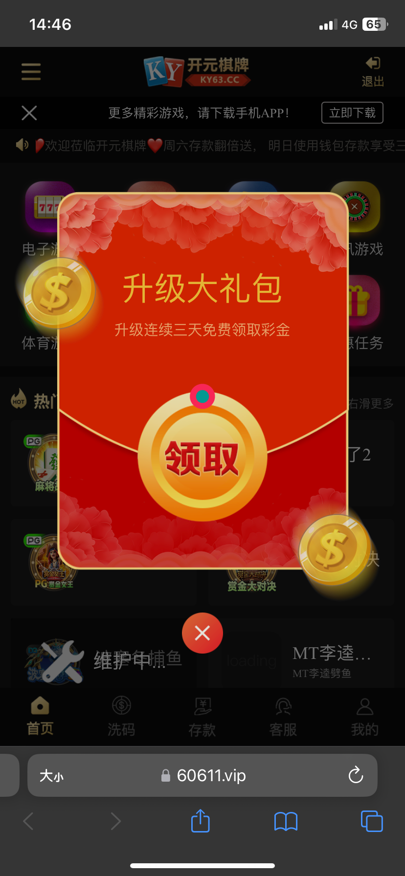 app登录不弹出这个红包,客服说要网页登录弹出来