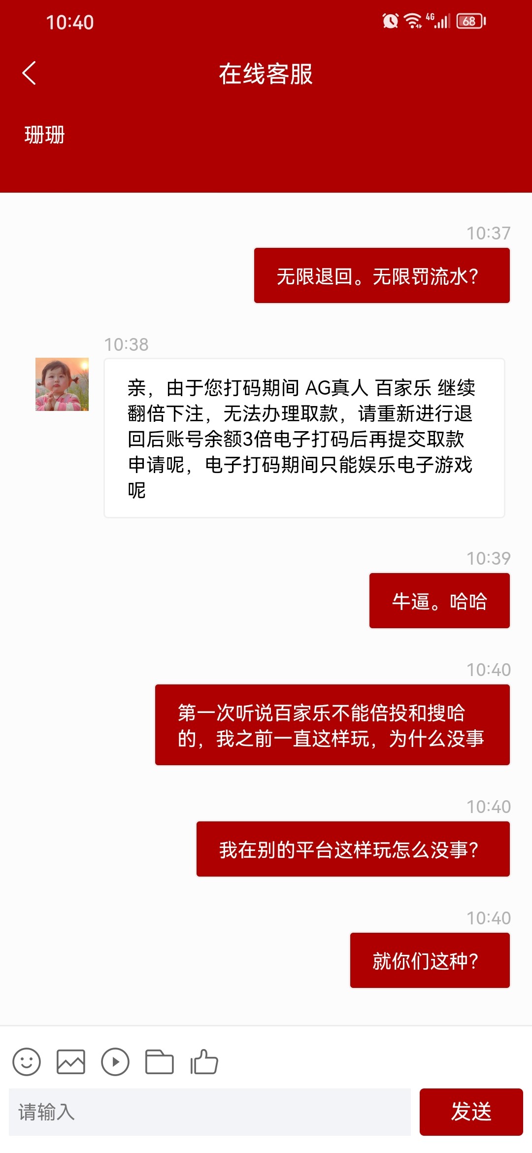 哈哈,又罚3倍流水。畜牲990老会员,玩了一年多打码几十万。这样恶心人