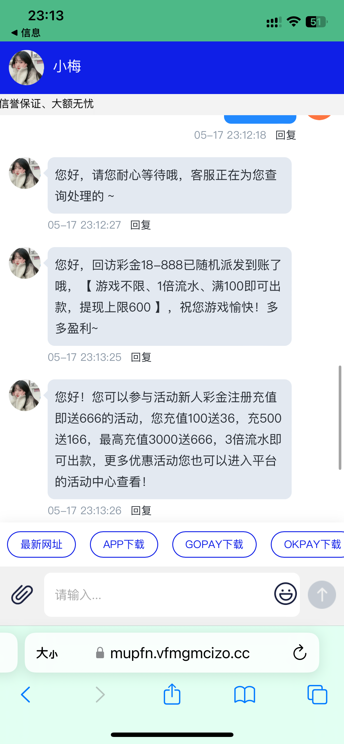 昨晚回访38打到100提现一直不到账,问客服要充值,今天充了找客服直接出了昨晚提现那100。。。