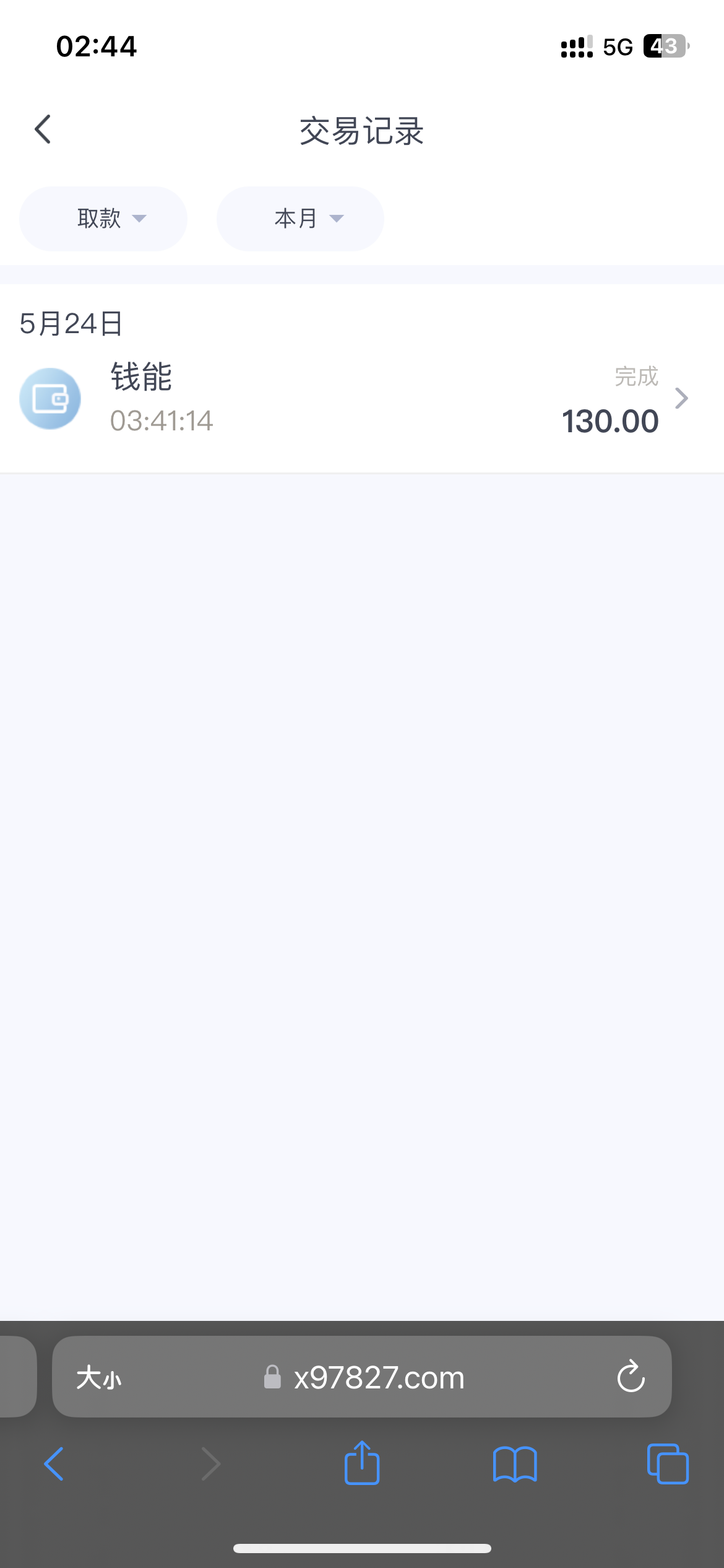 出款图补上,实在没脸发,打了几千流水,上的最多200多,130耻辱退款,赌神上吧,觉得没自信的千万别去