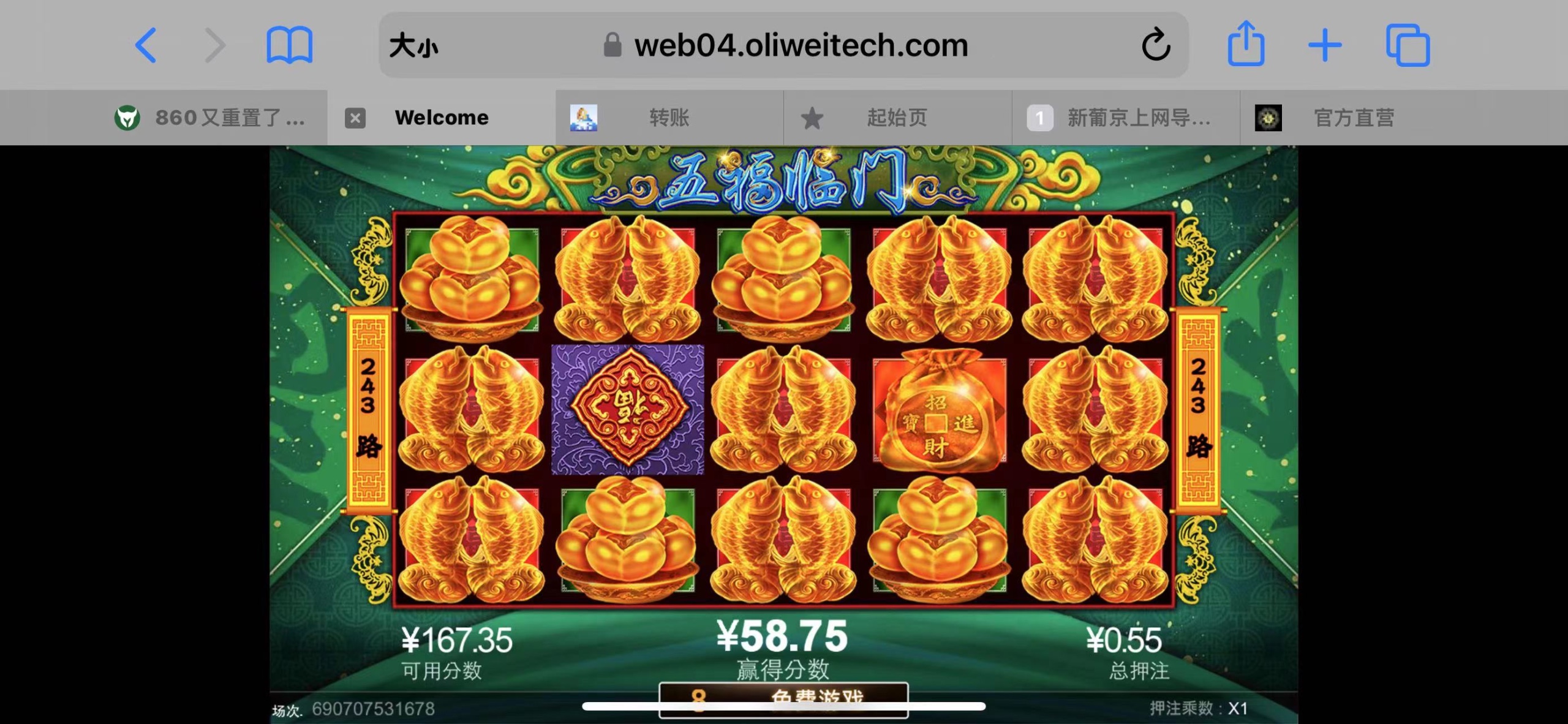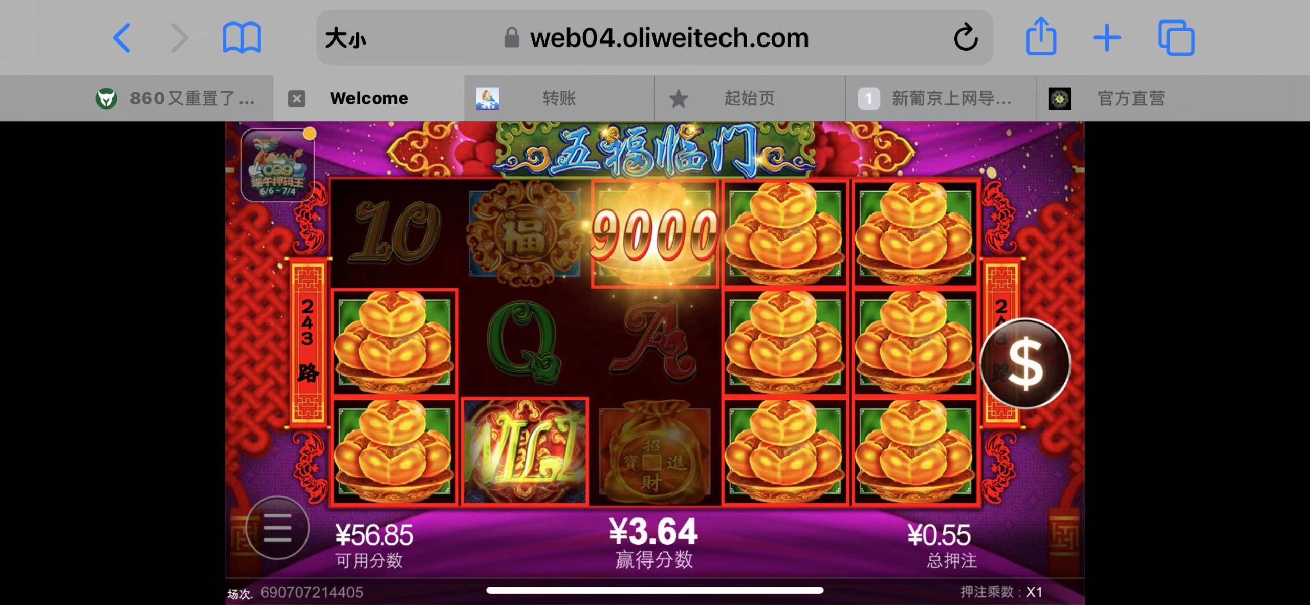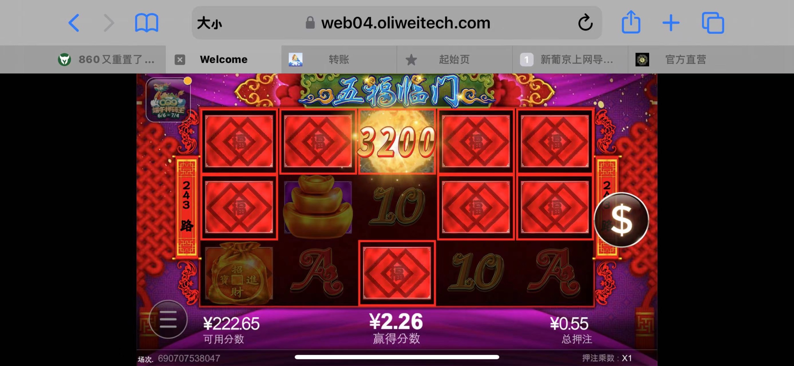 第二个号 和860的特邀彩金同时打 直接出两个号