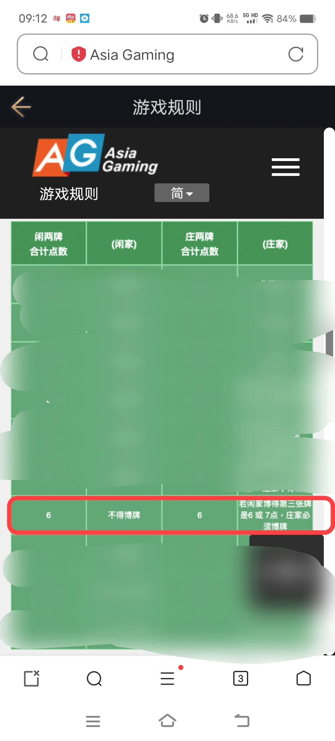 好好看规则,庄6的时候,闲补6或者7,庄要接着补。