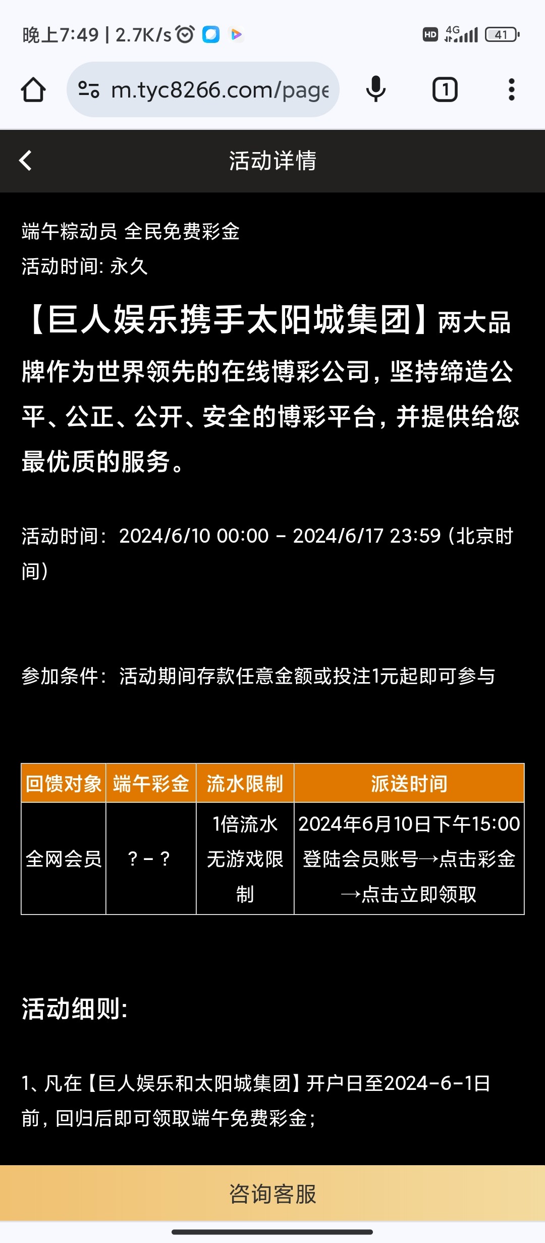 巨人端午节回馈彩金