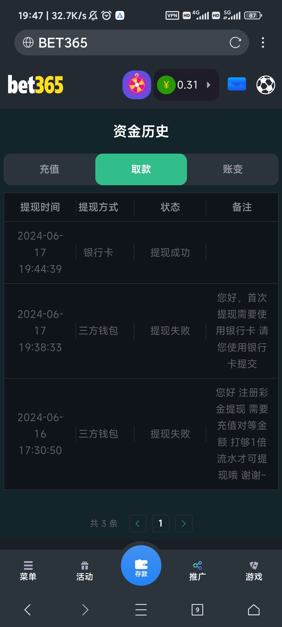 我都打了三四万流水了还存了一百还是提不了