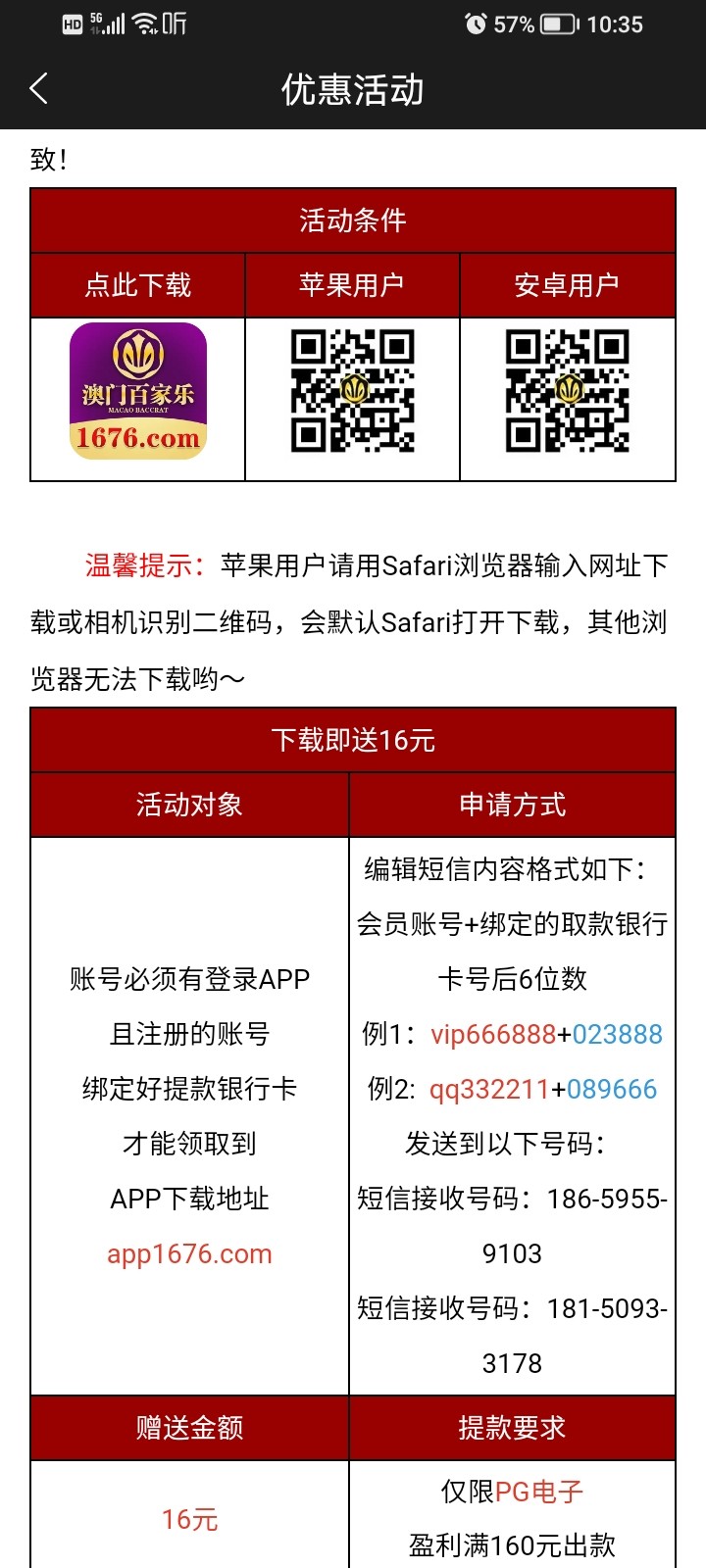 百家乐发短信送16元