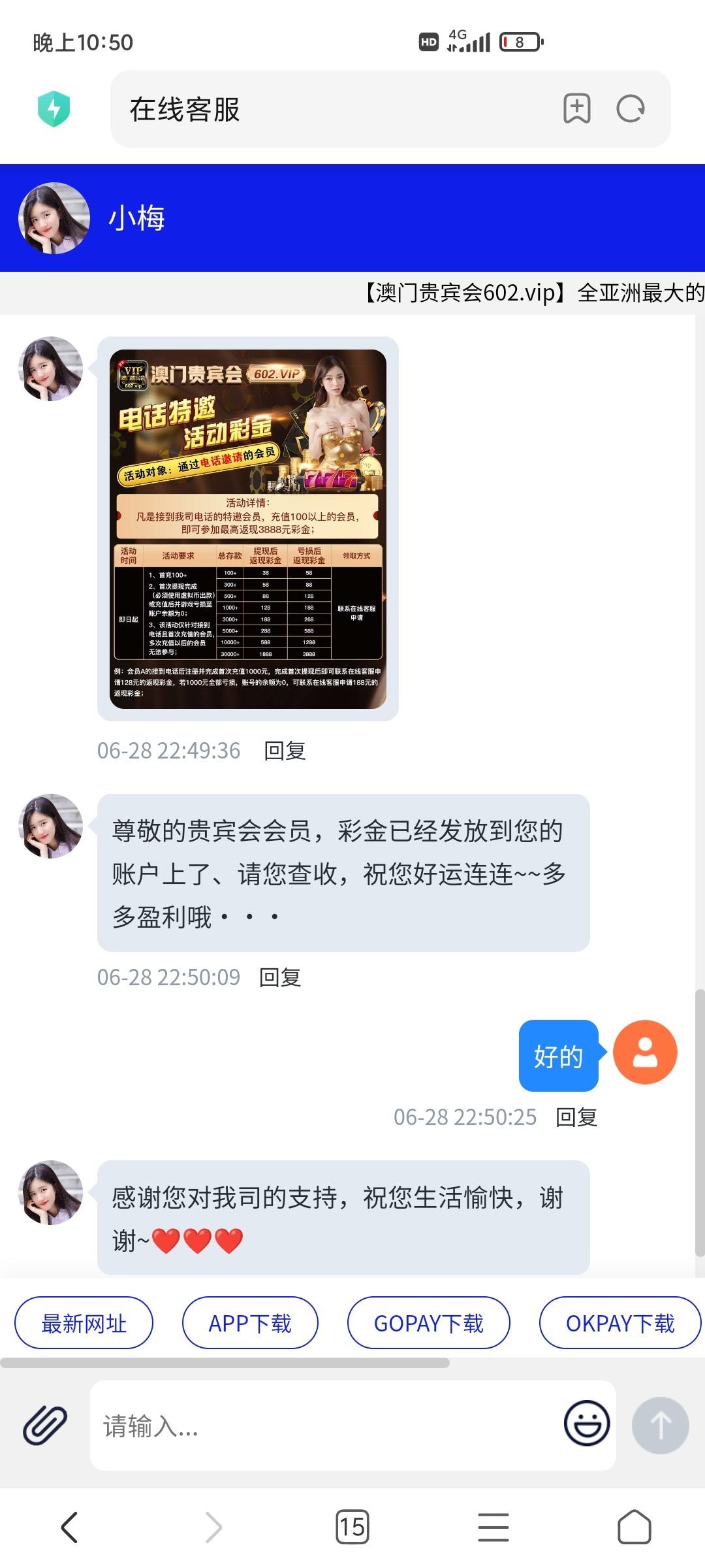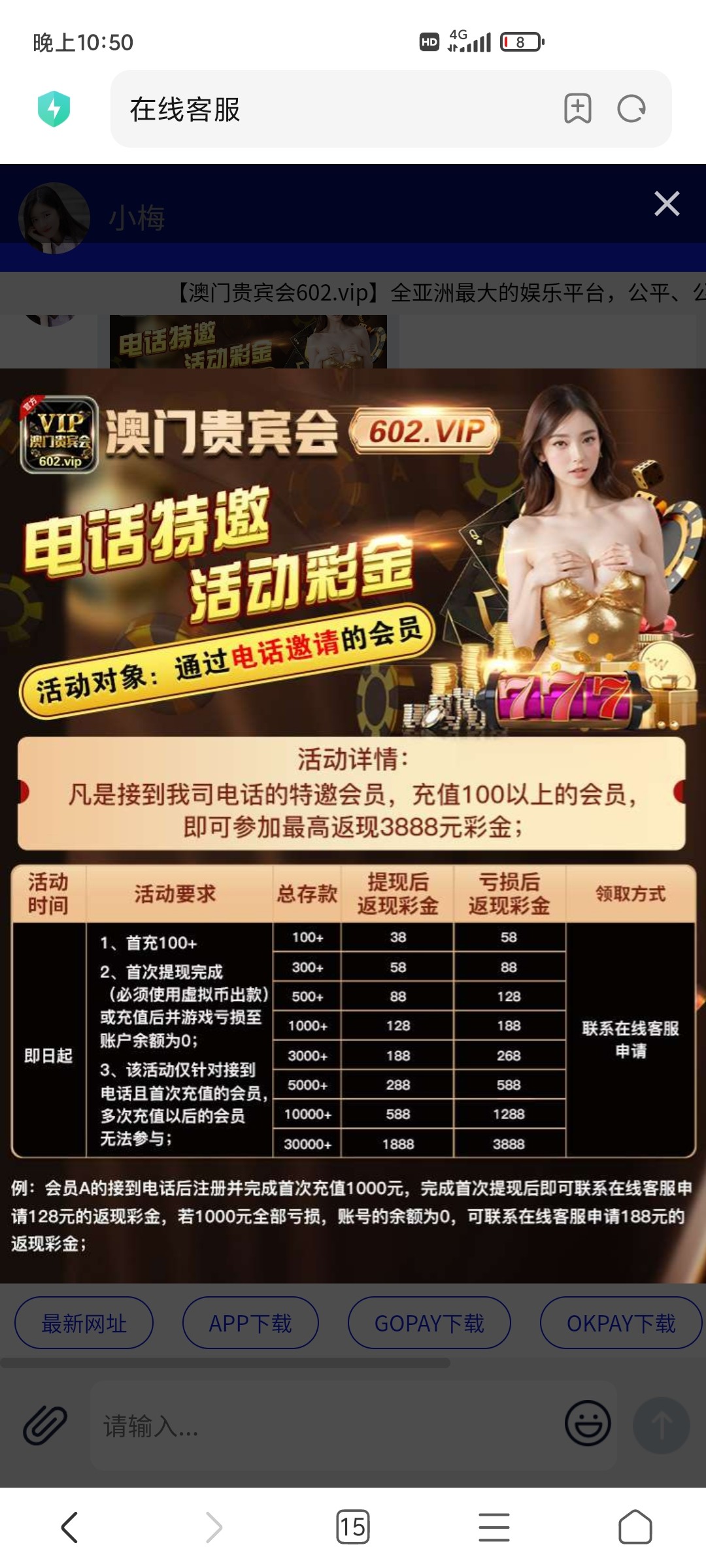 602啊?昨天打我电话特邀,电话里说免费送最低38起,找客服,客服说充值100提现后送38/亏损后送58,打的电子一共158,打220流水