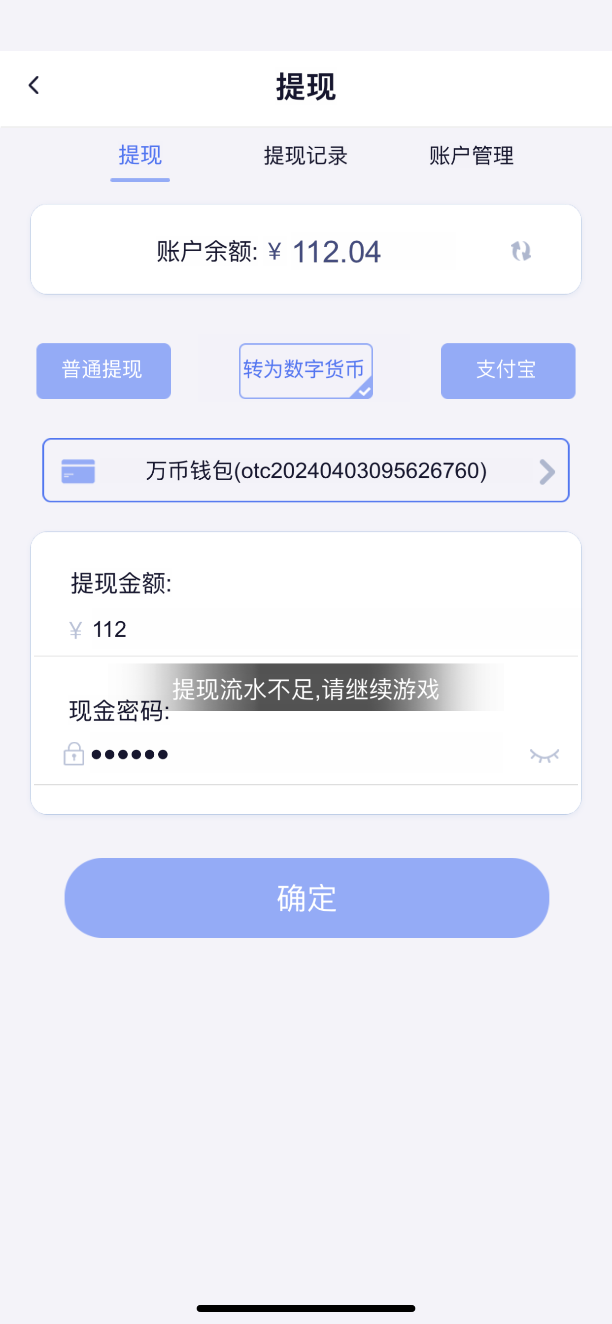 我充值100裸打也是提示流水不足