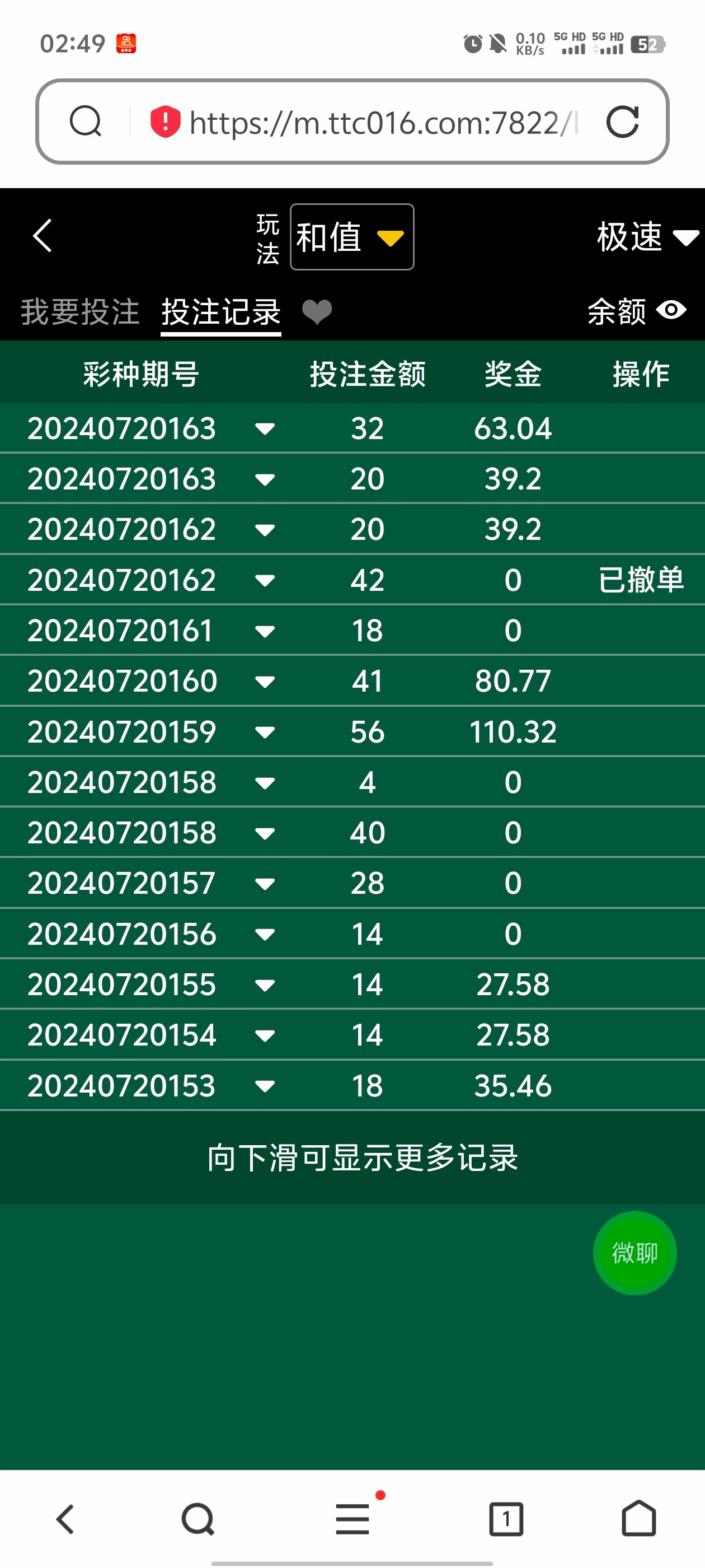 碰瓷成功,连开五把单,中了两把,提100不知道到不到账