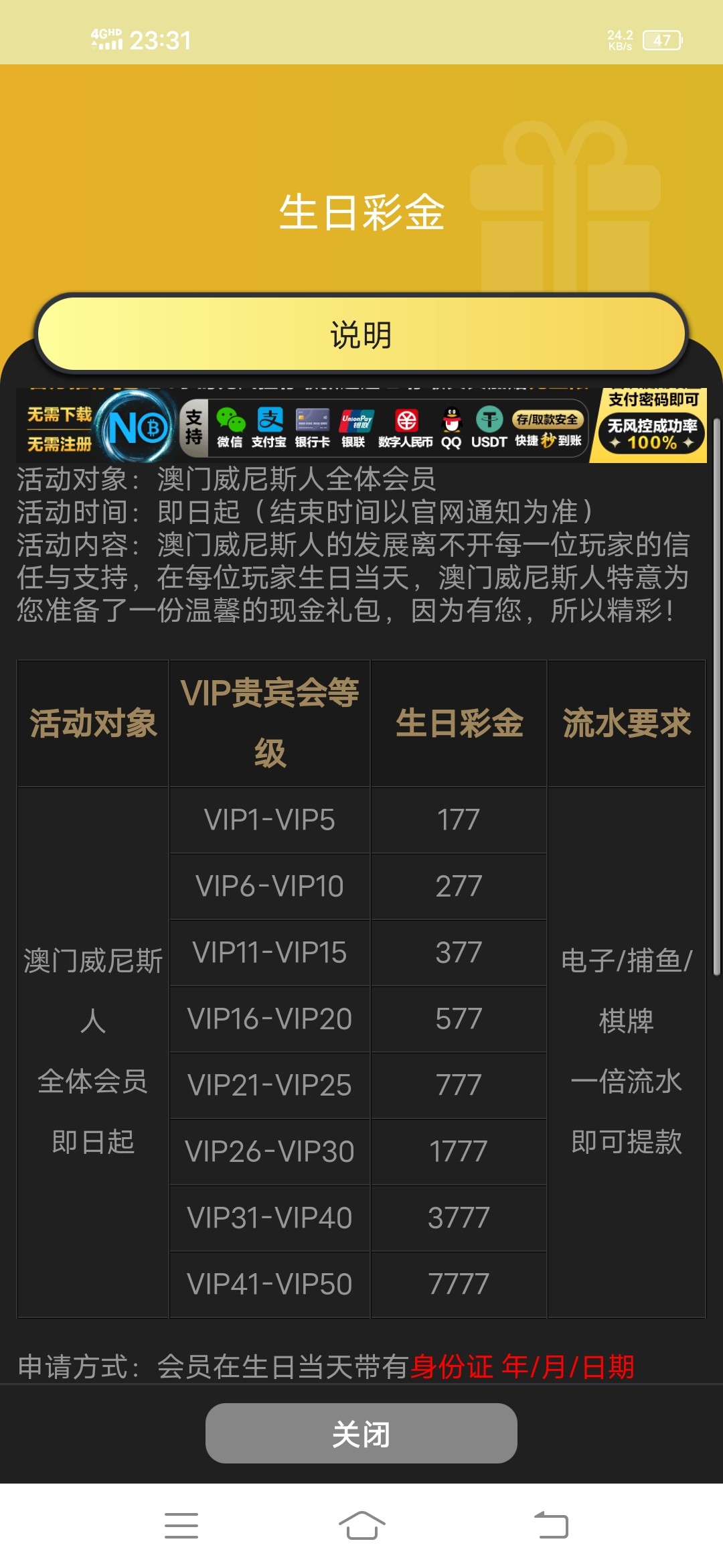 威尼斯领取生日彩金