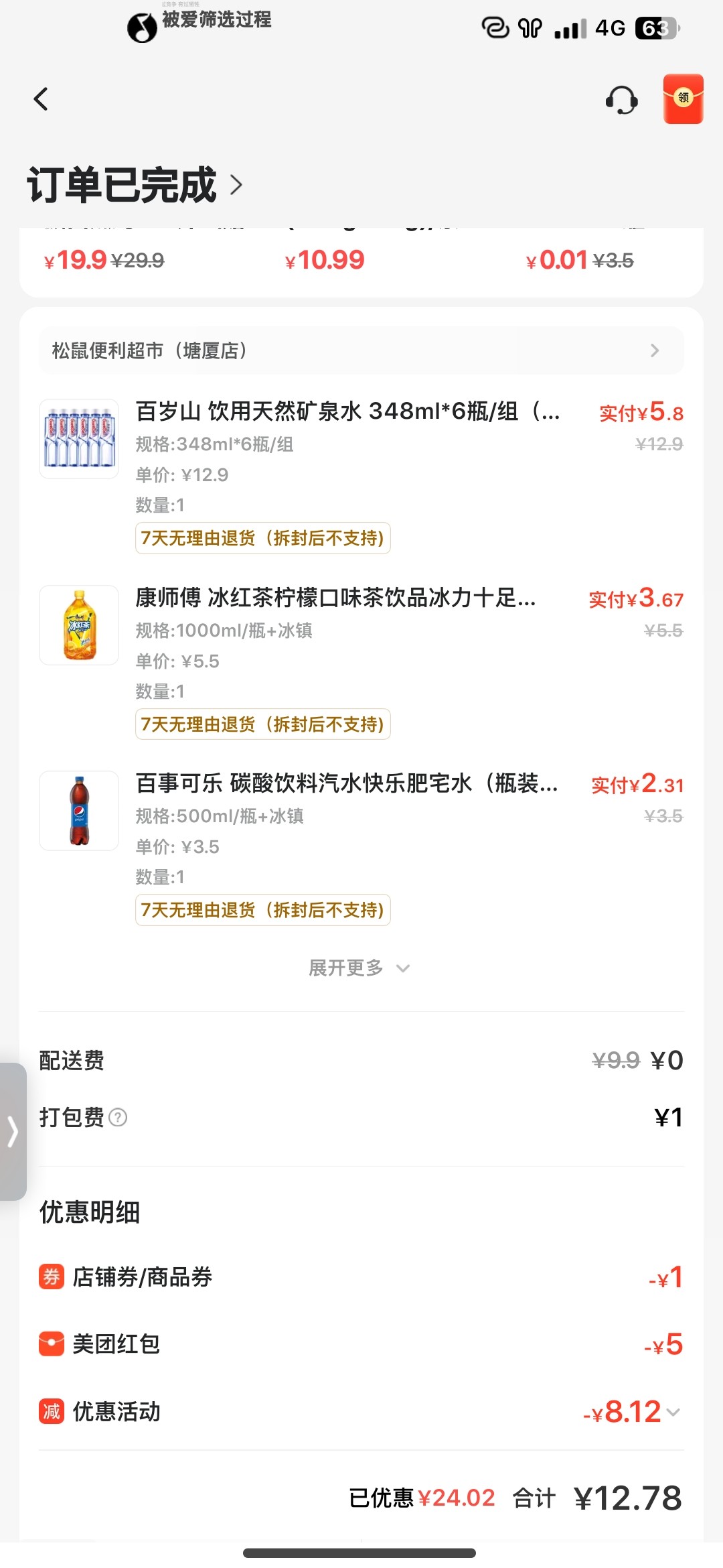 拼多多信用付,买些泡面面包,水,防挂壁用啊