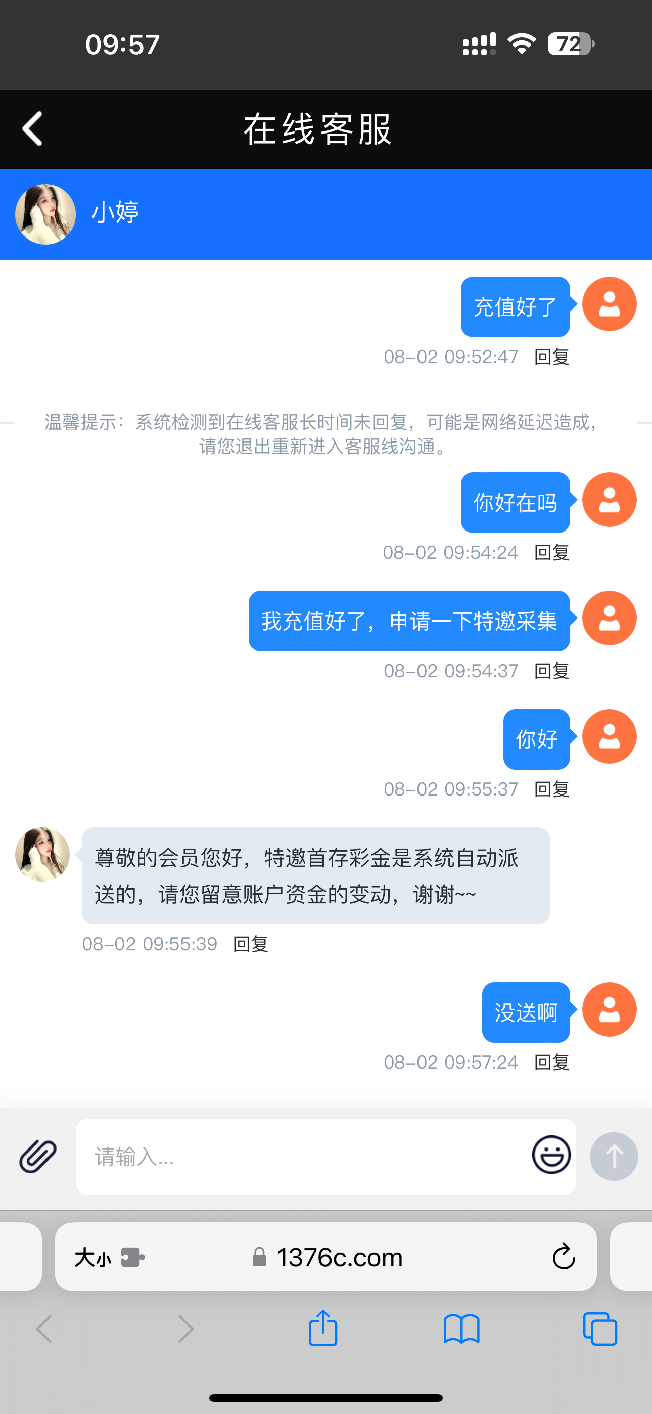就是问的客服,说充值完找他申请,充值好了和我说系统自动送