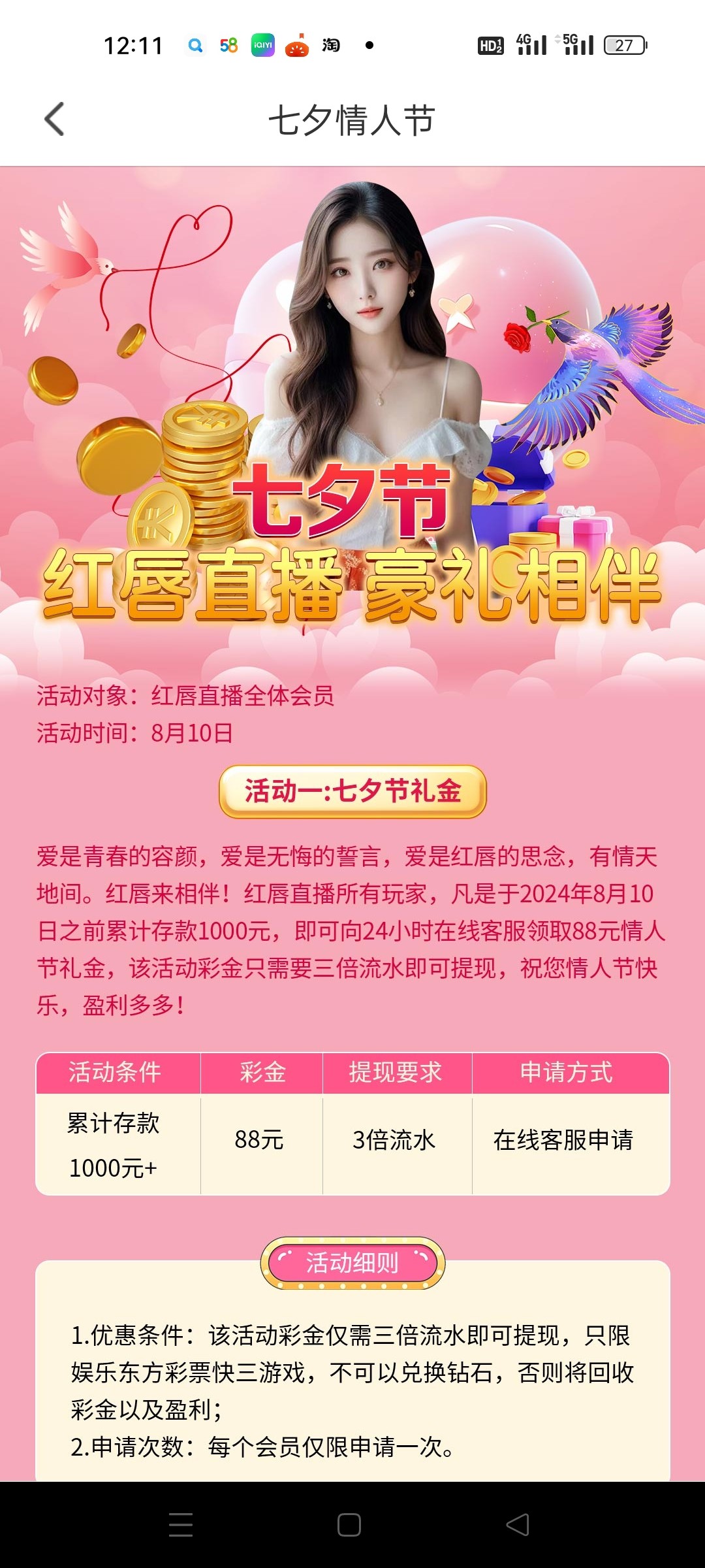 红辰直播七夕节送彩