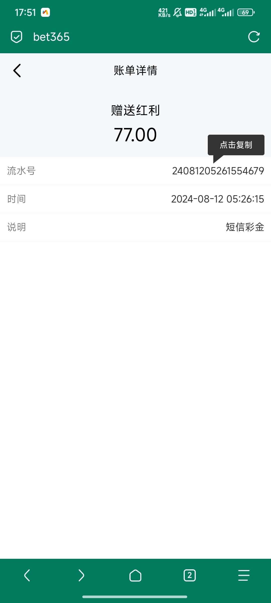 bet365短信碰瓷送77