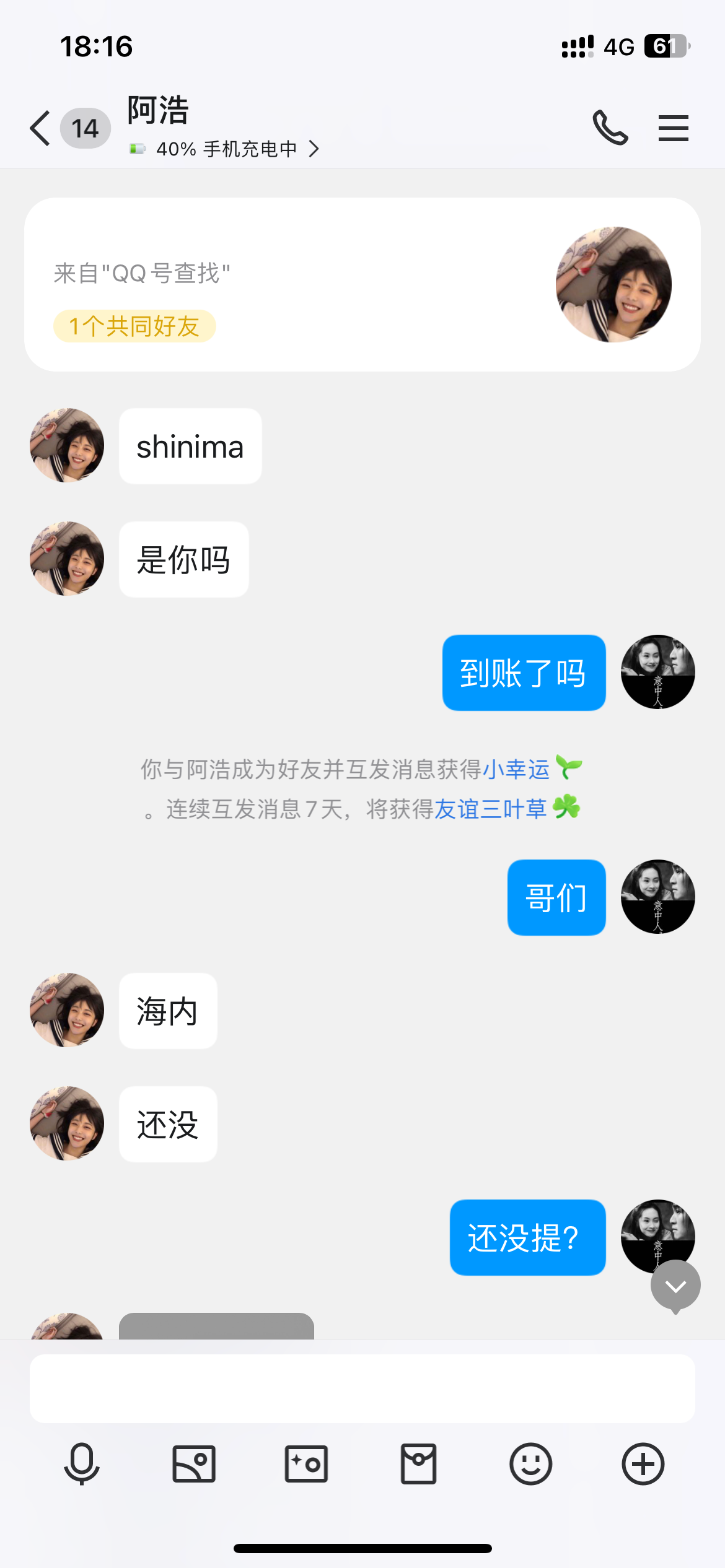 孙子别逗我笑啊 ,你要演双簧也要有点脑子和逻辑,怎么他发你账号把你图片里的账号出款金额时间都发出去啊? 还有就在我质疑你之后就加好友啊 孙子,还有他怎么知道你qq号的 或者说你怎么知道他qq号的 论坛不能私聊 他也没回复你告诉你他qq号  他从哪里得知你qq号的啊 孙子 有点脑子 死畜生推黑猪