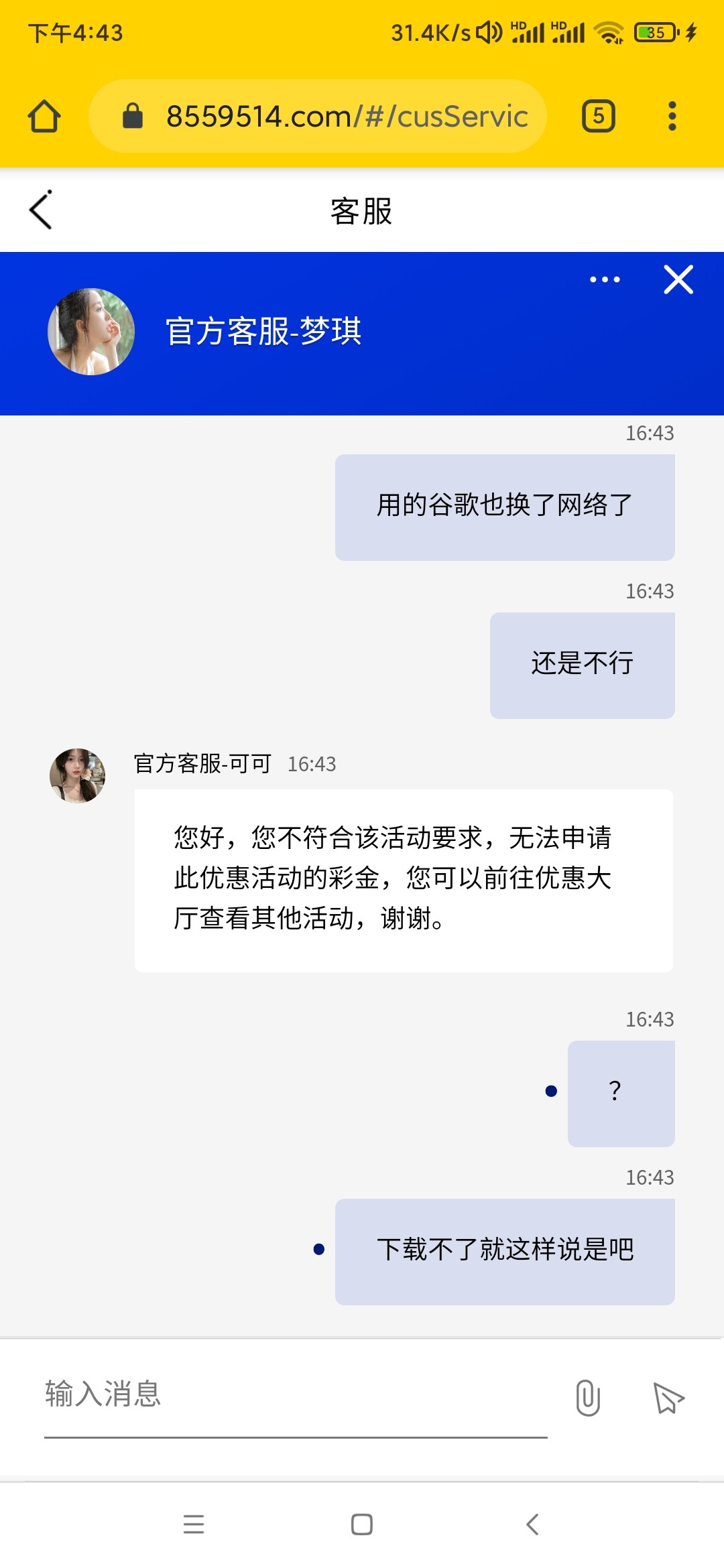 狗庄第三天送不起:您好,我司赠送彩金都是严格按照活动规则及要求的哦,不符合无法赠送相关彩金,感谢您的理解~