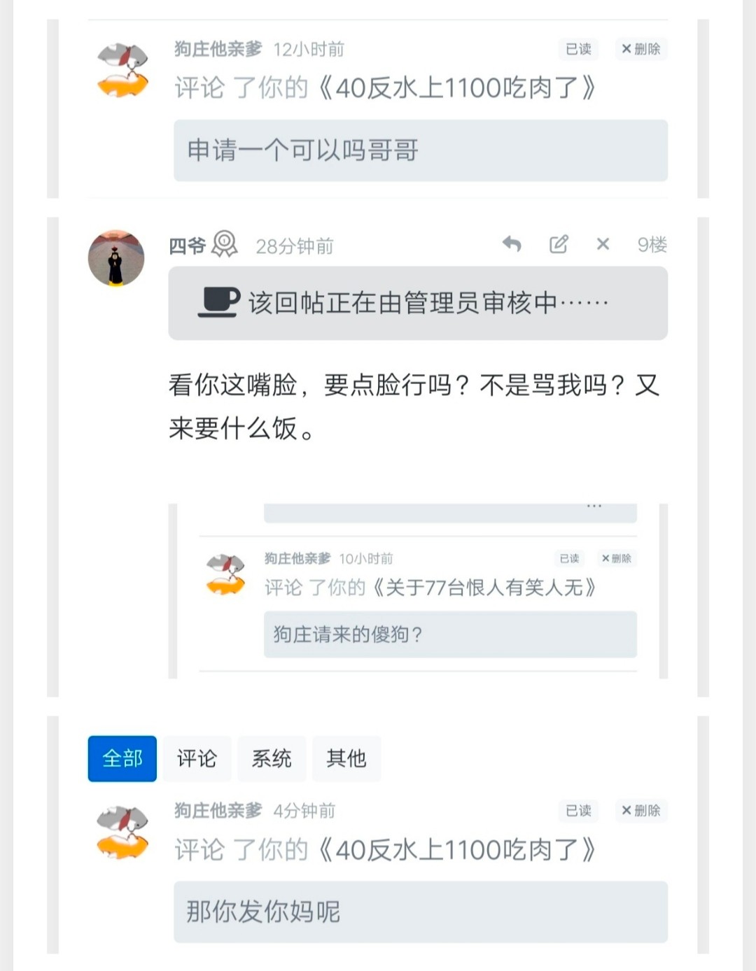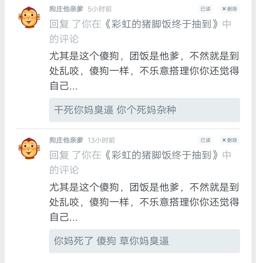 对,这种人就应该骂他,别屏蔽他,让他发出来,看看这种挂逼狗有多破防