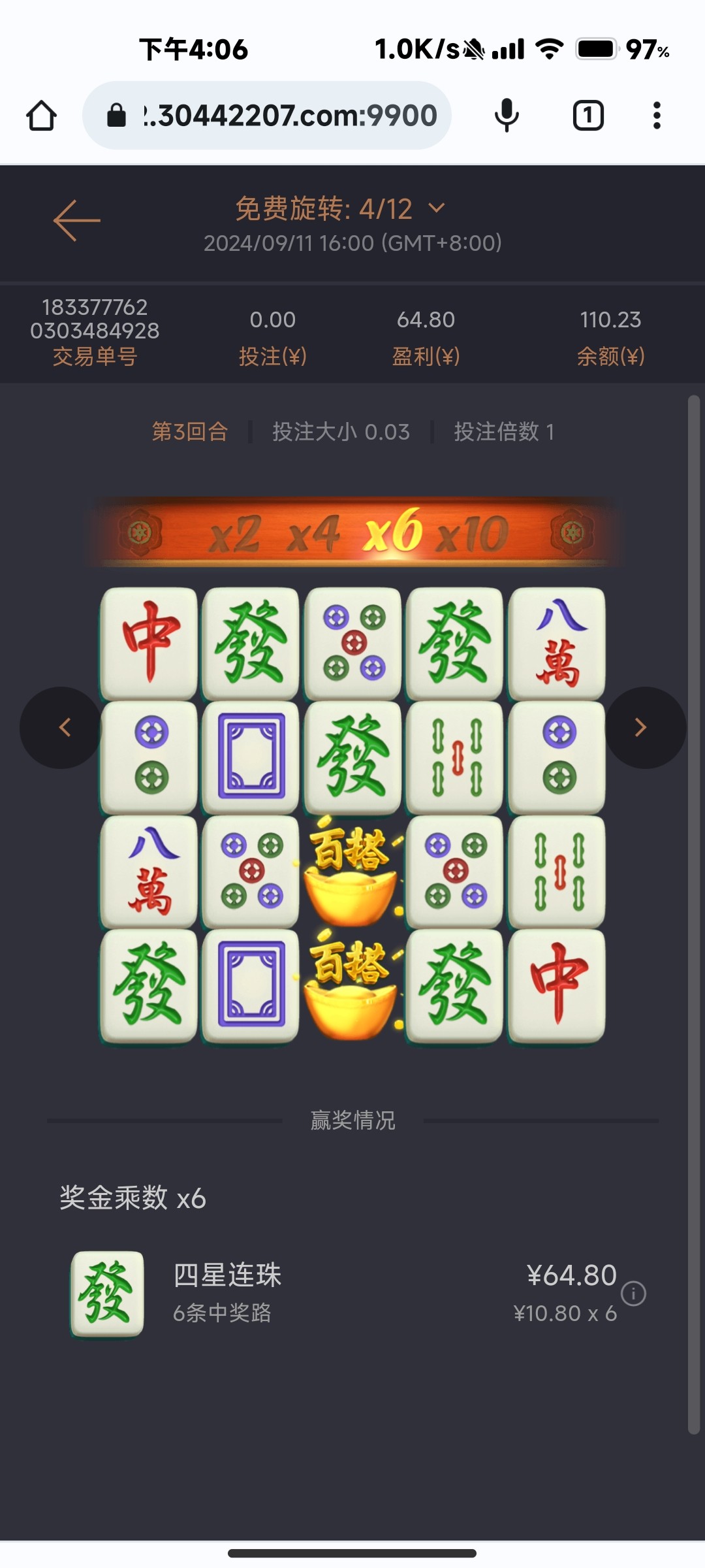 狗屎麻将  今天16拉18拉20拉都进免费了就是不爆分,冰雪25拉也进免费了2次空转,女王和船长也进免费爆个几十倍,老哥们真他妈的狗屎电子玩不得啊 卧槽他妈的拉这么高的注而且都进免费了就是不爆分