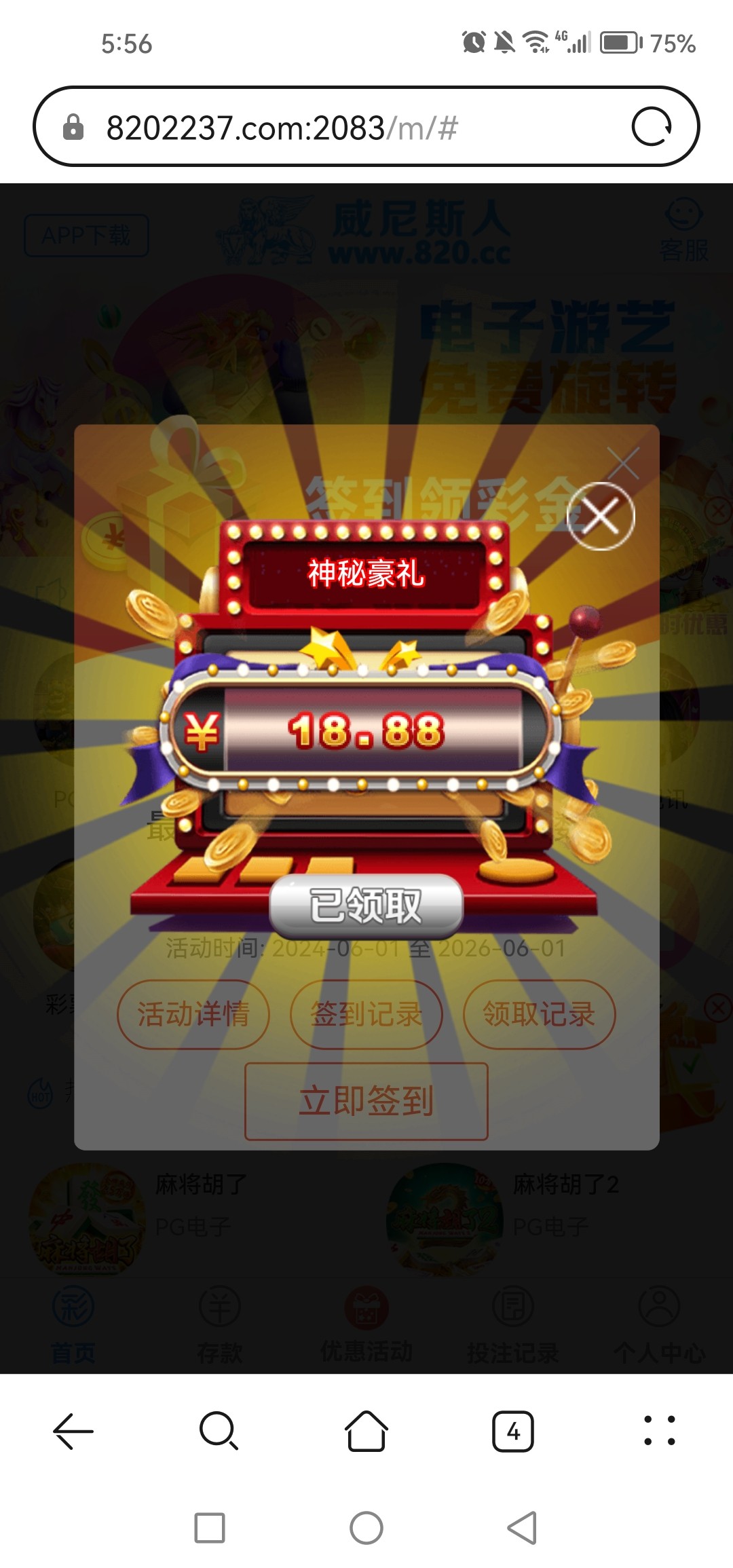 特邀14号充值了100返100没打出来,送的18出了