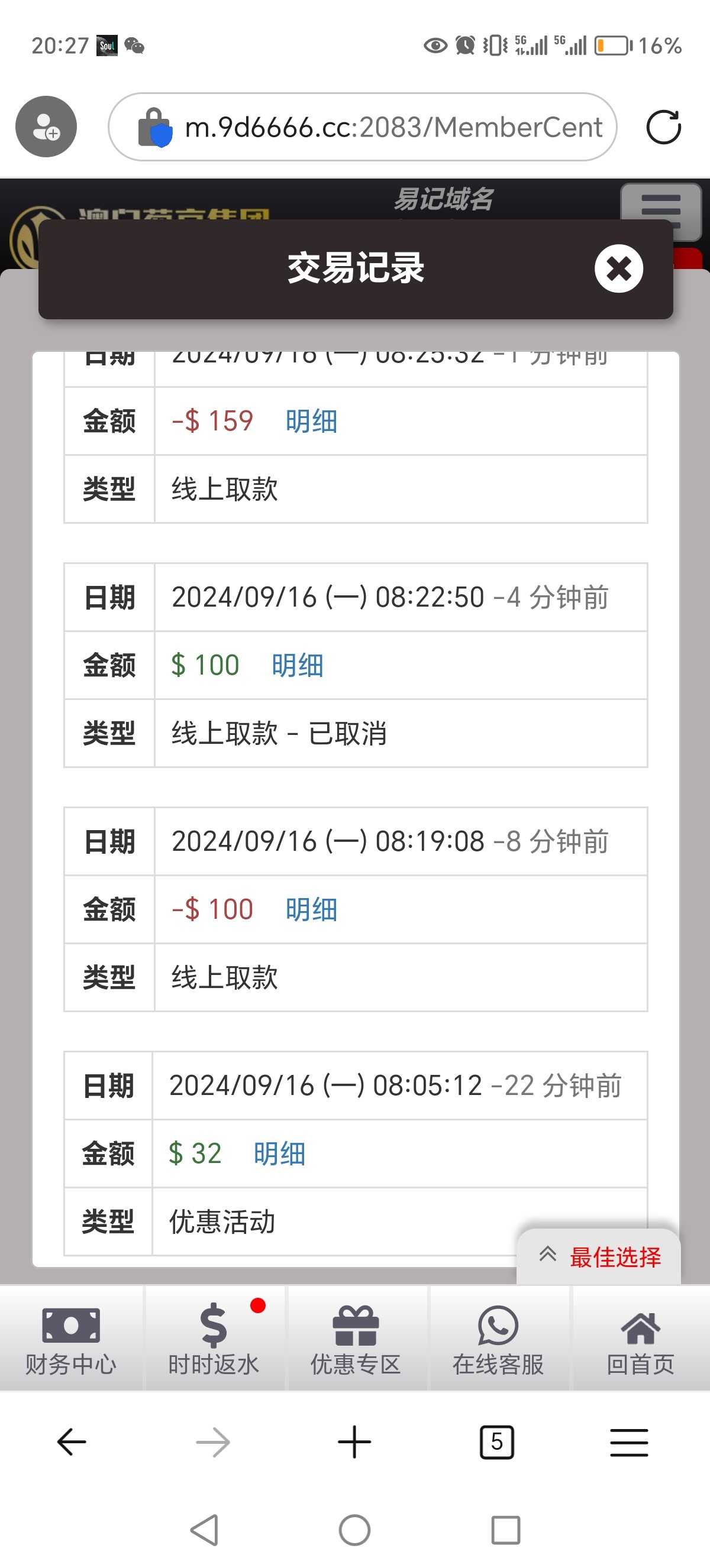 送了 32 ,提一百看到账不