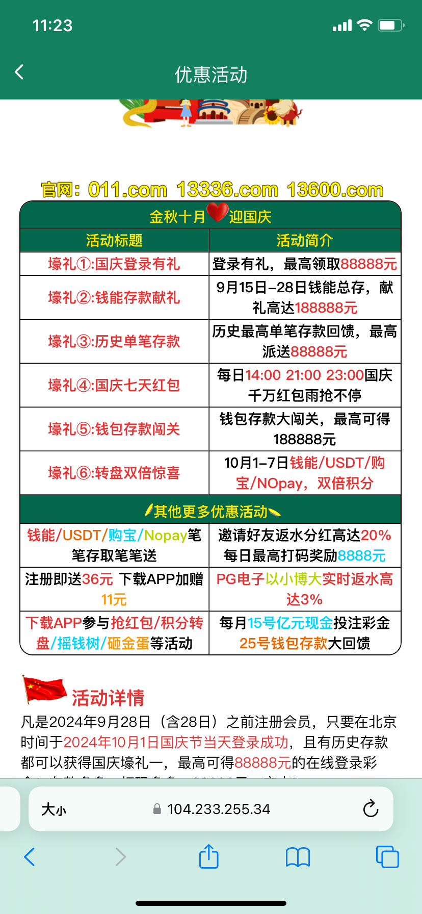 有号充值过的12点过后就可以领取国庆彩金 地址 011.com