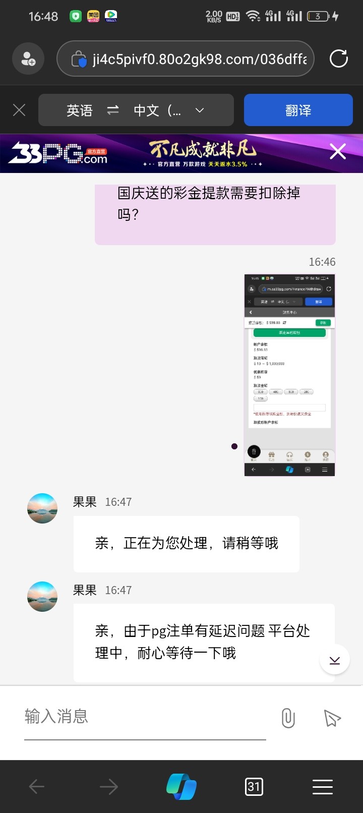 33pg彩金已经到账了啊