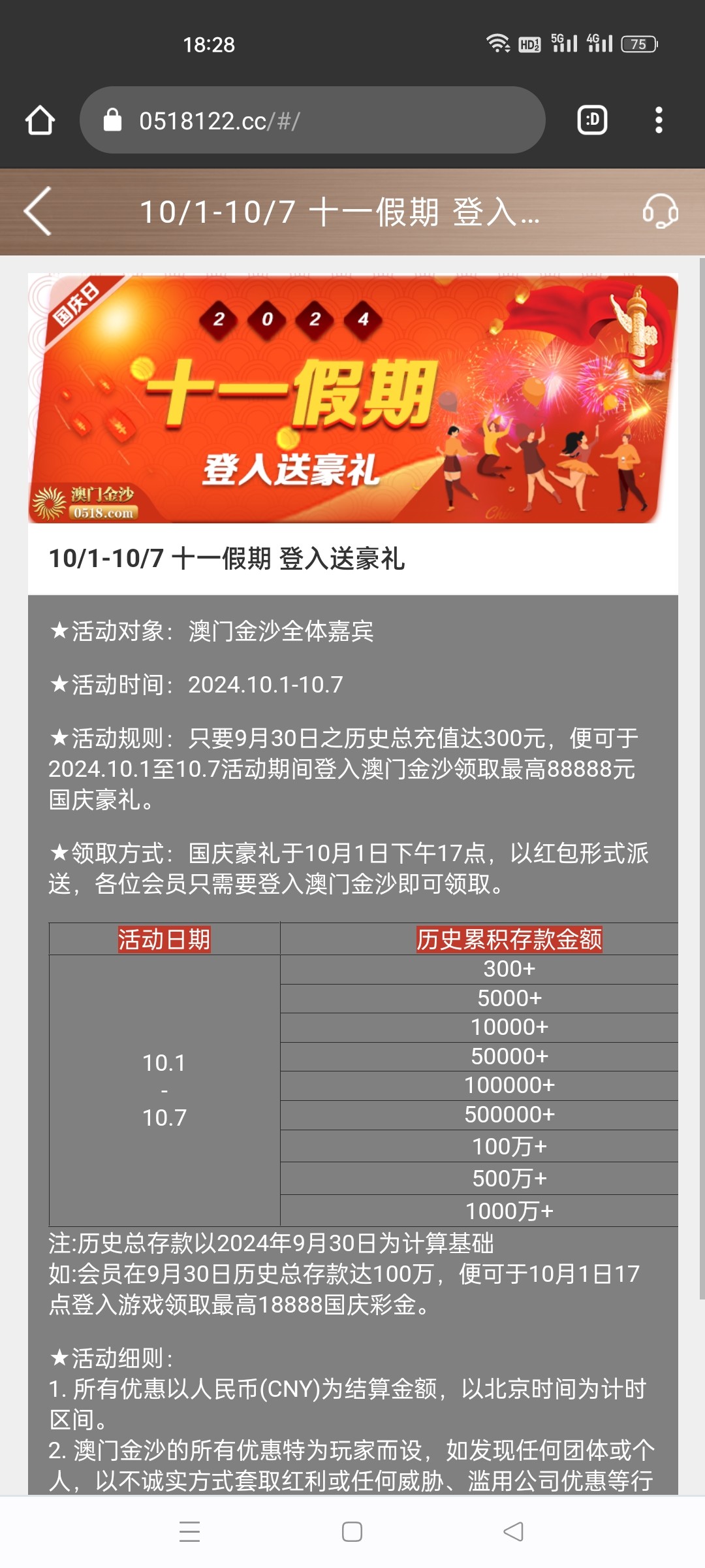 金沙0518国庆活动彩