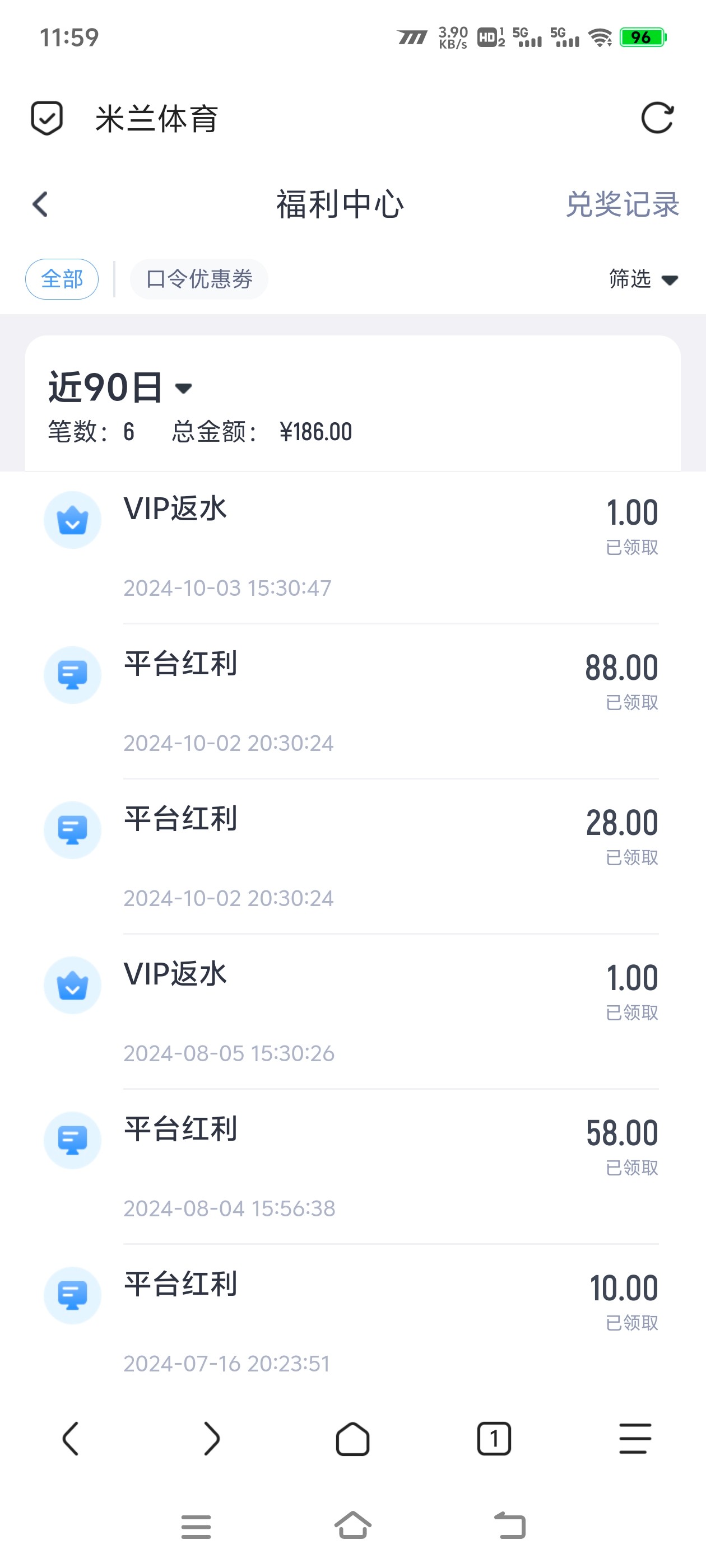 老用户登录福利中心有没有回馈彩金,有就有没有无视,好几个老铁反馈领到58彩金,具体自测吧。