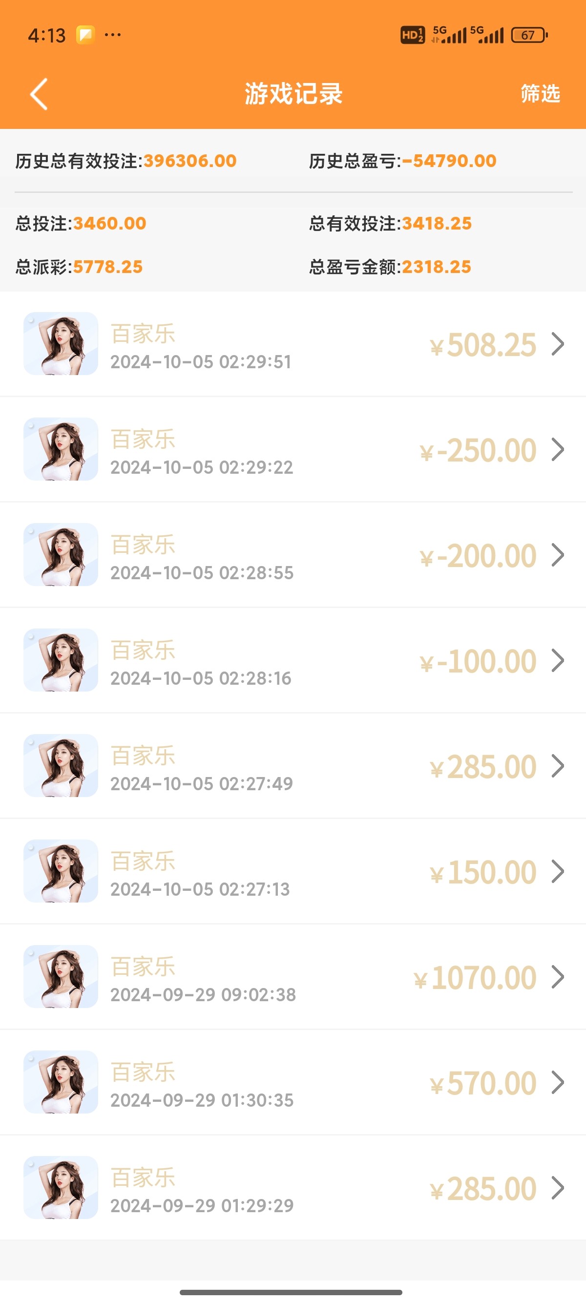 shl888 六十多万流水才输一万多,够可以了!要我打六十多万流水至少要输二十万,总是打不到三倍流水就输光了!!